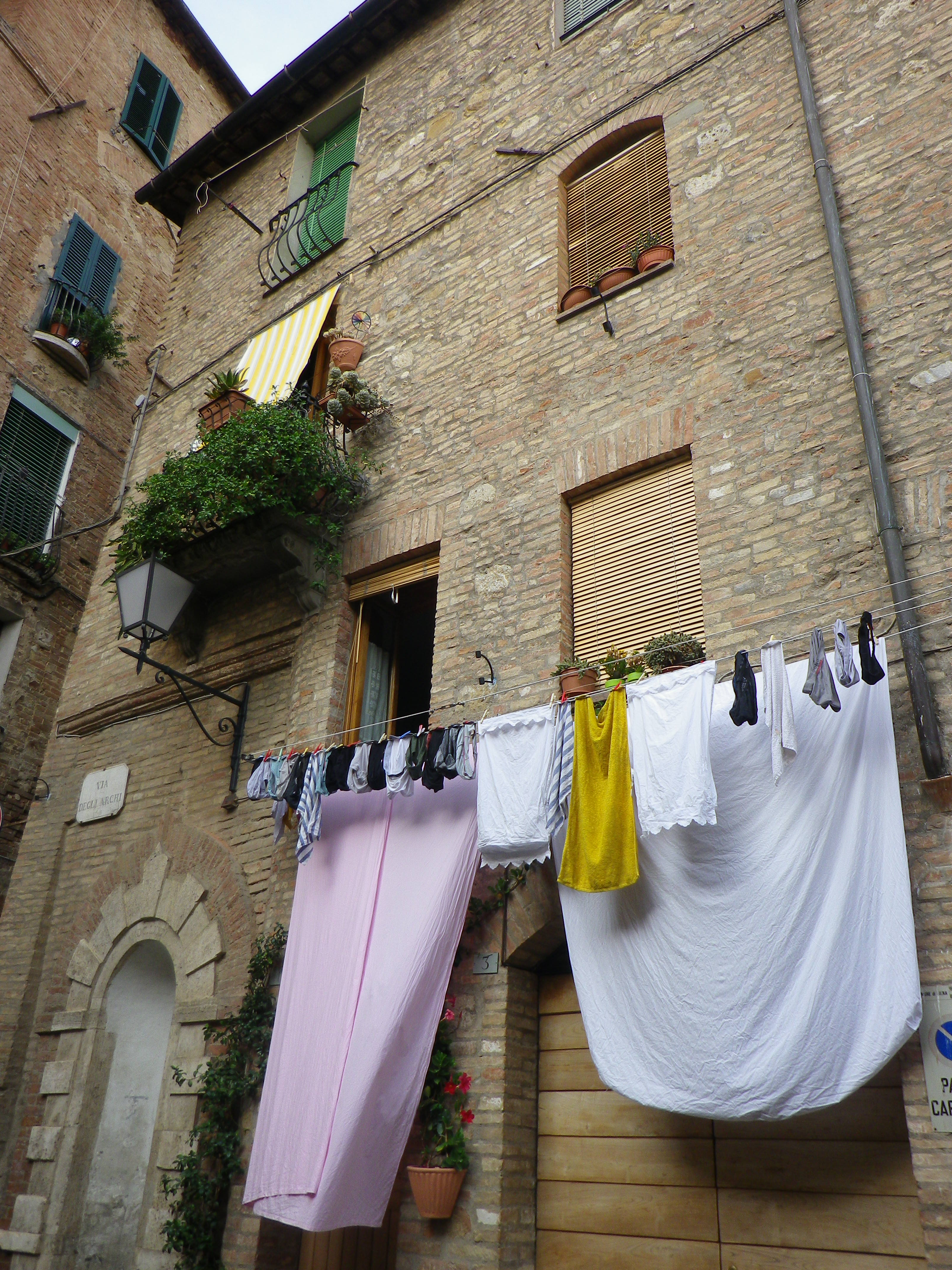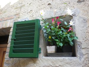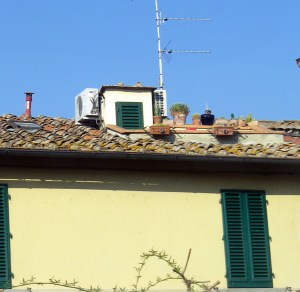 This picture was taken from the bus coming back into Florence on our last day. I’m not sure how the gardener waters these plants — does she crawl through that tiny little shuttered window, or does the low wall really hide an inset terrace?