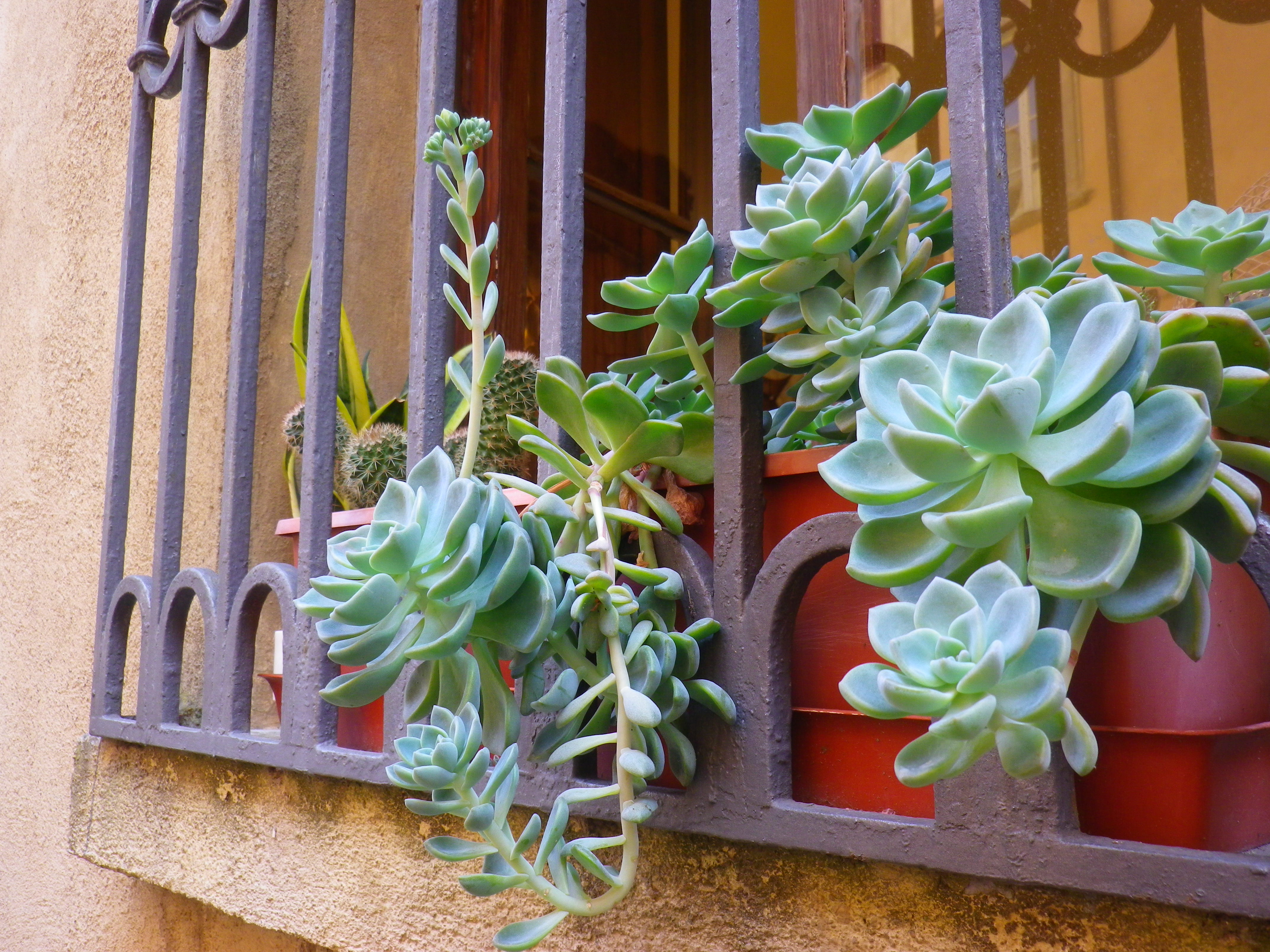 Here’s a typical balcony planting. You can see the cactus as well as the laundry drying.