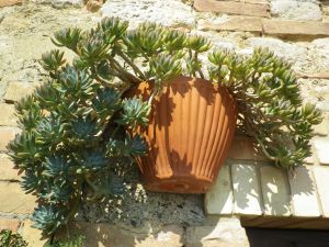 Lots of succulents, as you might imagine in this Mediterranean climate. Here is a window pot in Volterra,