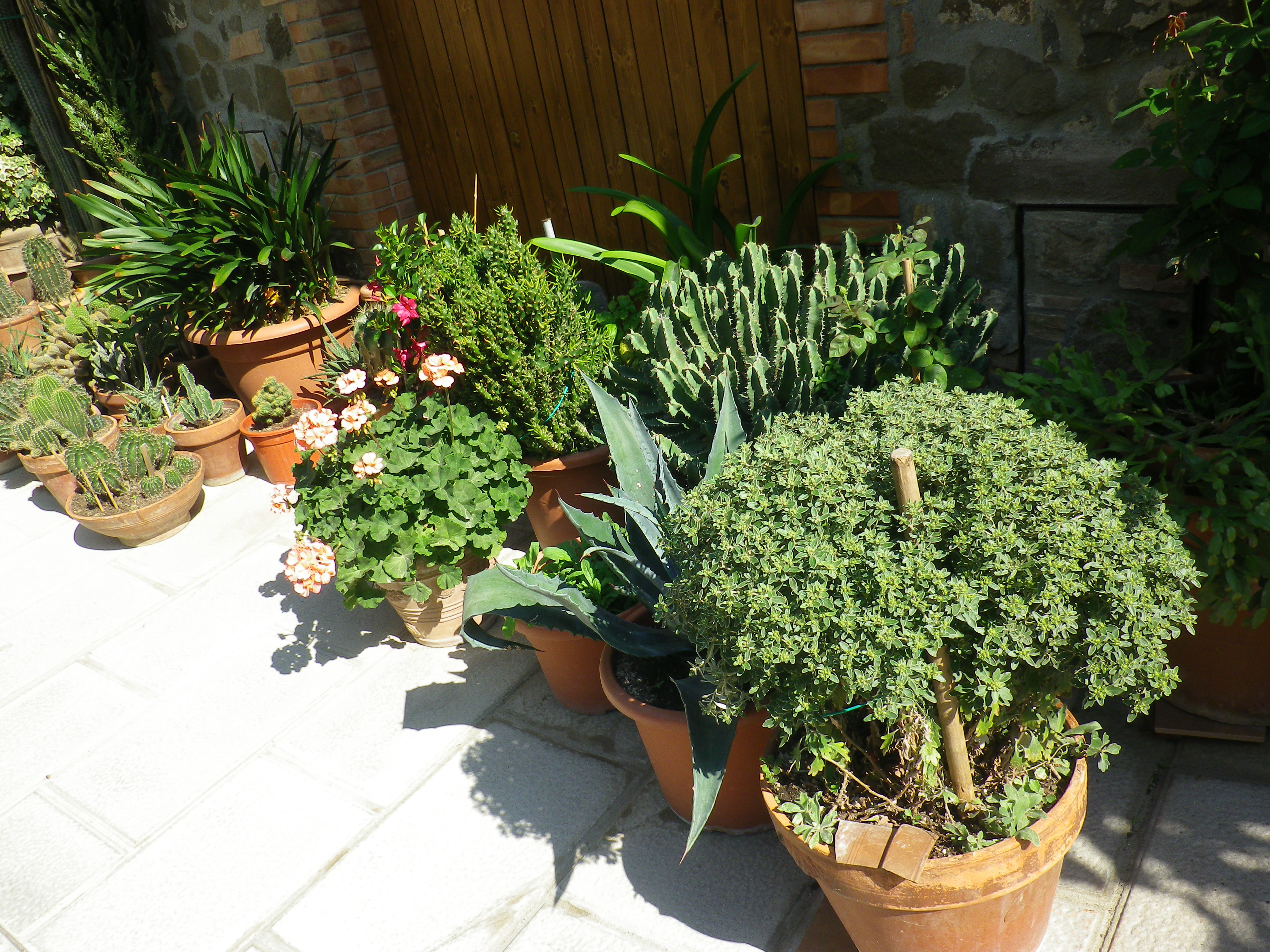Most of the time, anyway… Although we didn’t visit any gardens, not even the Boboli in Florence (lack of time and energy, sadly), we saw lots and lots of container gardens everywhere we went. Let’s start with a huge pot from Impruneta, this one found in a courtyard at the Palazzo Riccardo-Medici in Florence.