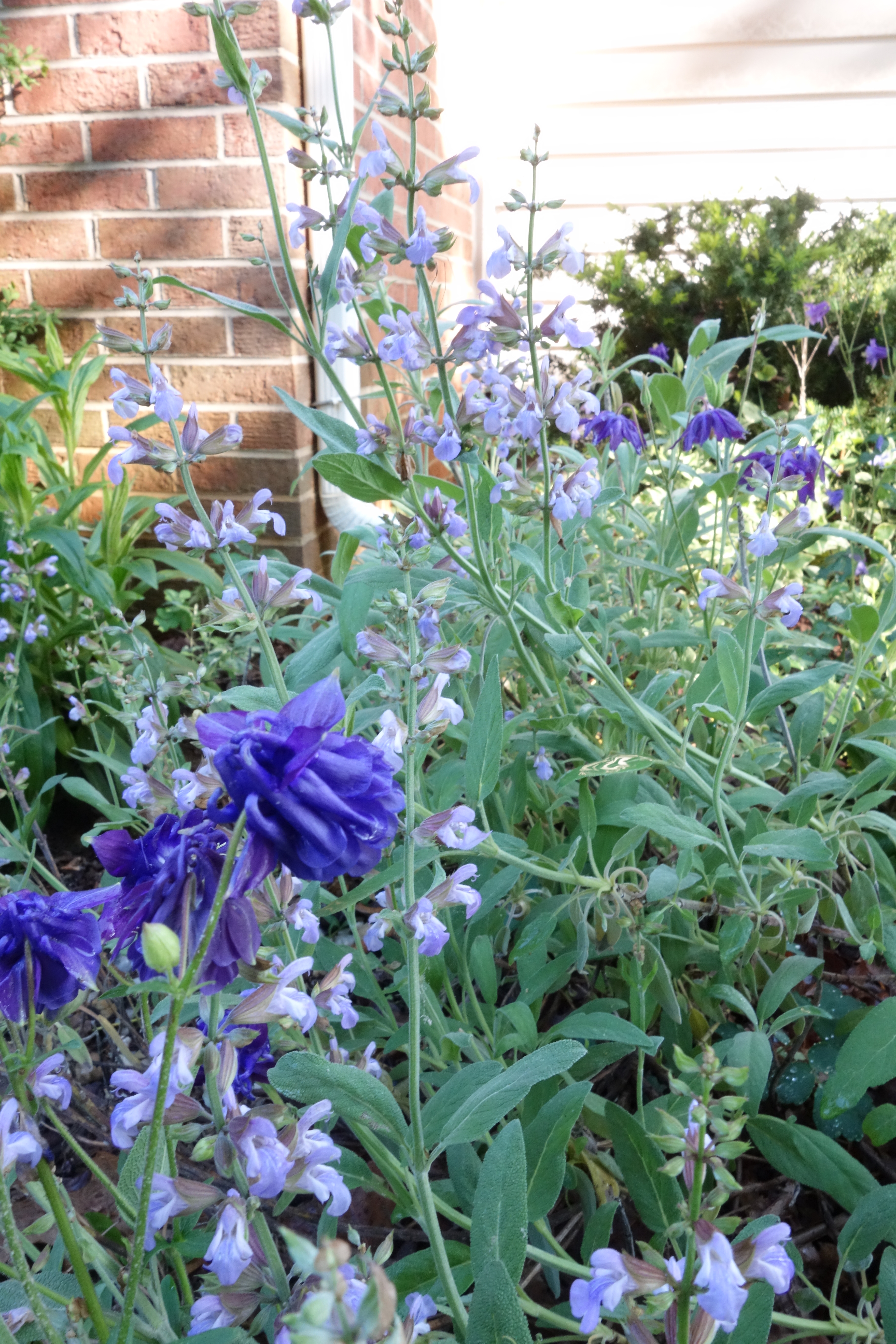 Spring colors always seem to come in waves. Late May brings blue spikes – baptisia, amsonia, columbine and sage,