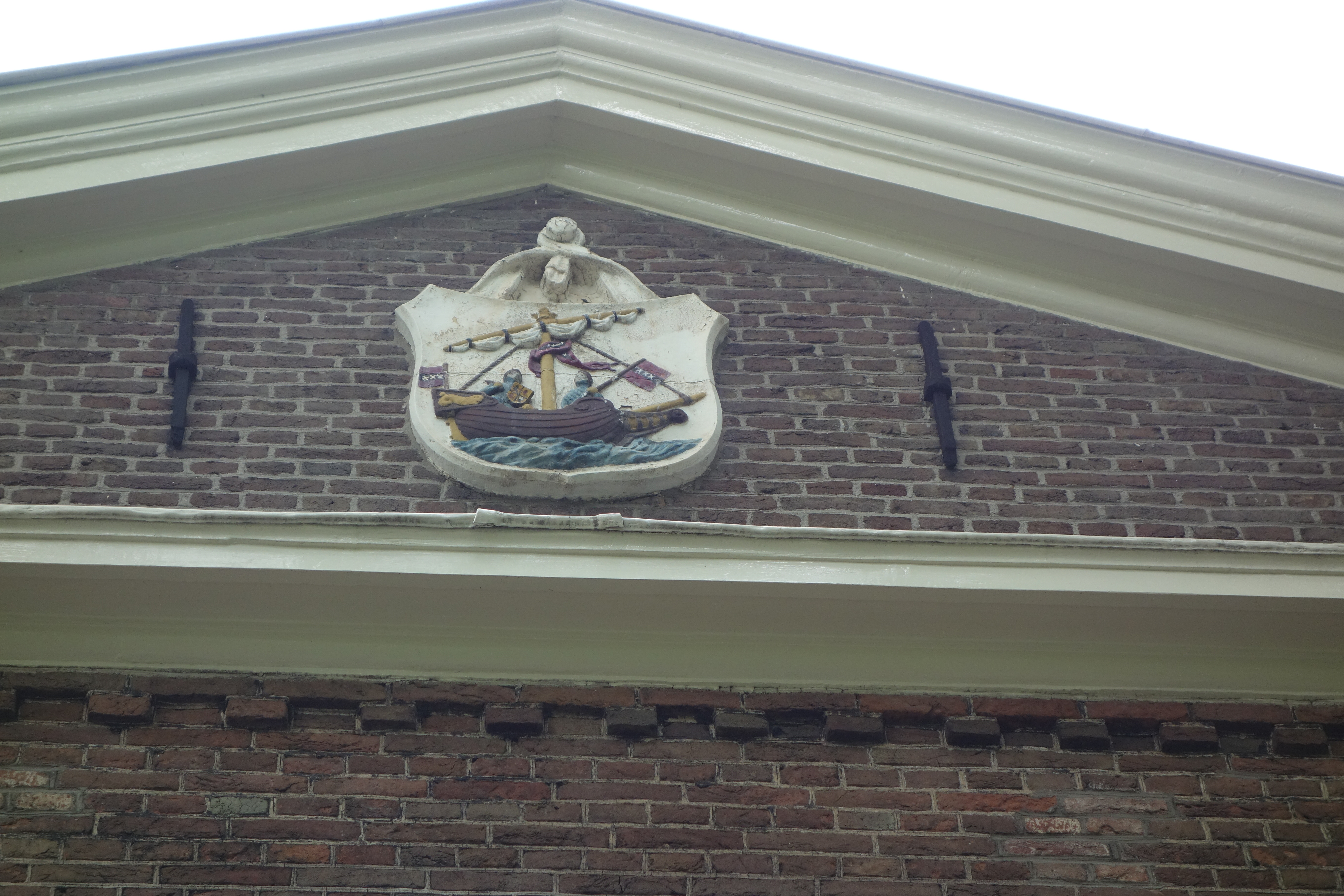 A man-powered crane lifted goods from the barges on the canals into the warehouses. It was a treat to see the crane in a couple of paintings, including this one at the Groeninge Museum. Look carefully to see the men walking along the steps of a crane like hamsters in a cage.