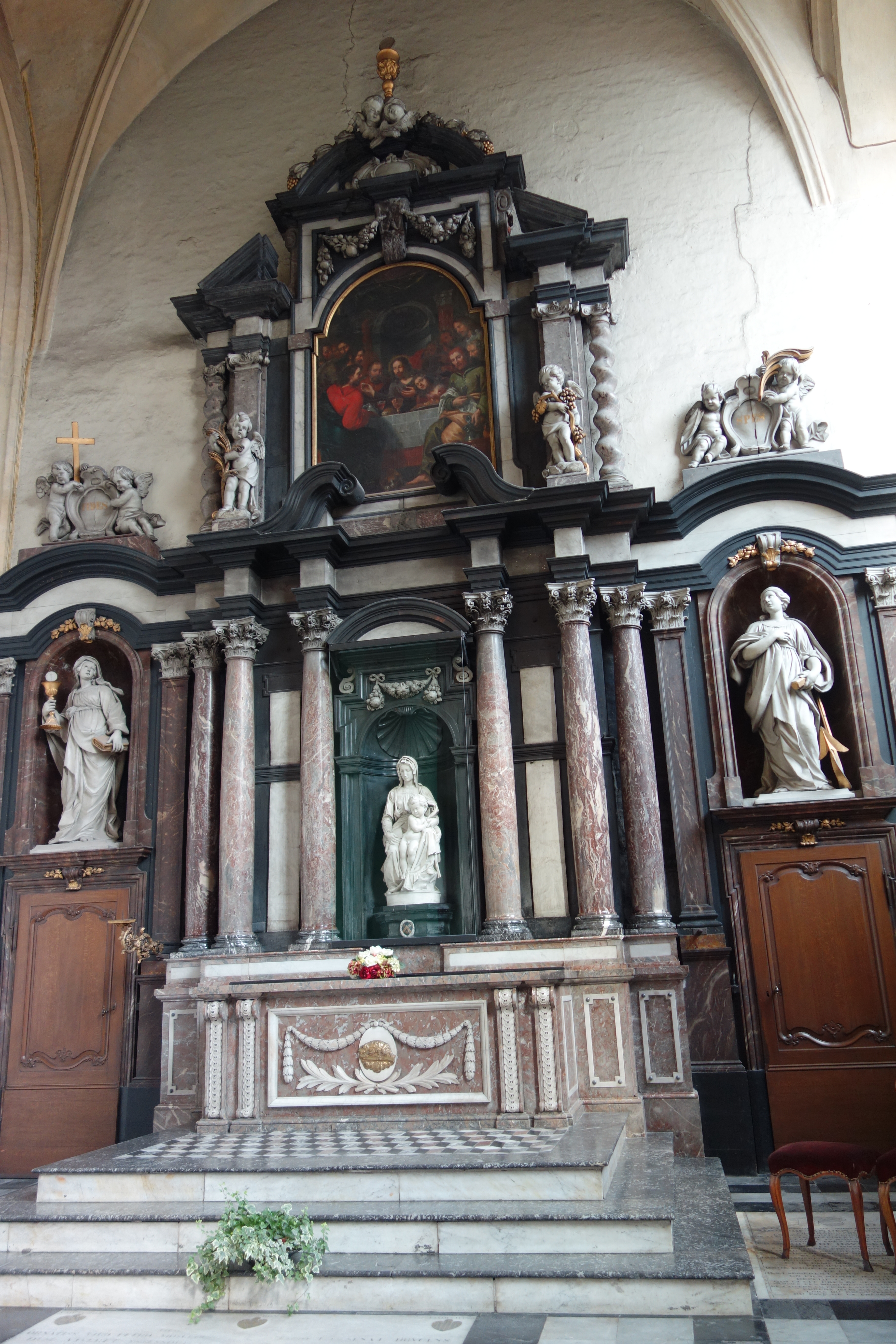 where Simon, Katelina, et al. attend a requiem mass for the King of Scotland and where the Gruuthuse family had an oratory that allowed them to attend church without leaving home. There’s also a Michelangelo Madonna and child sculpture here, which you can see for a small fee.