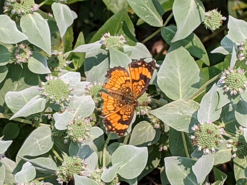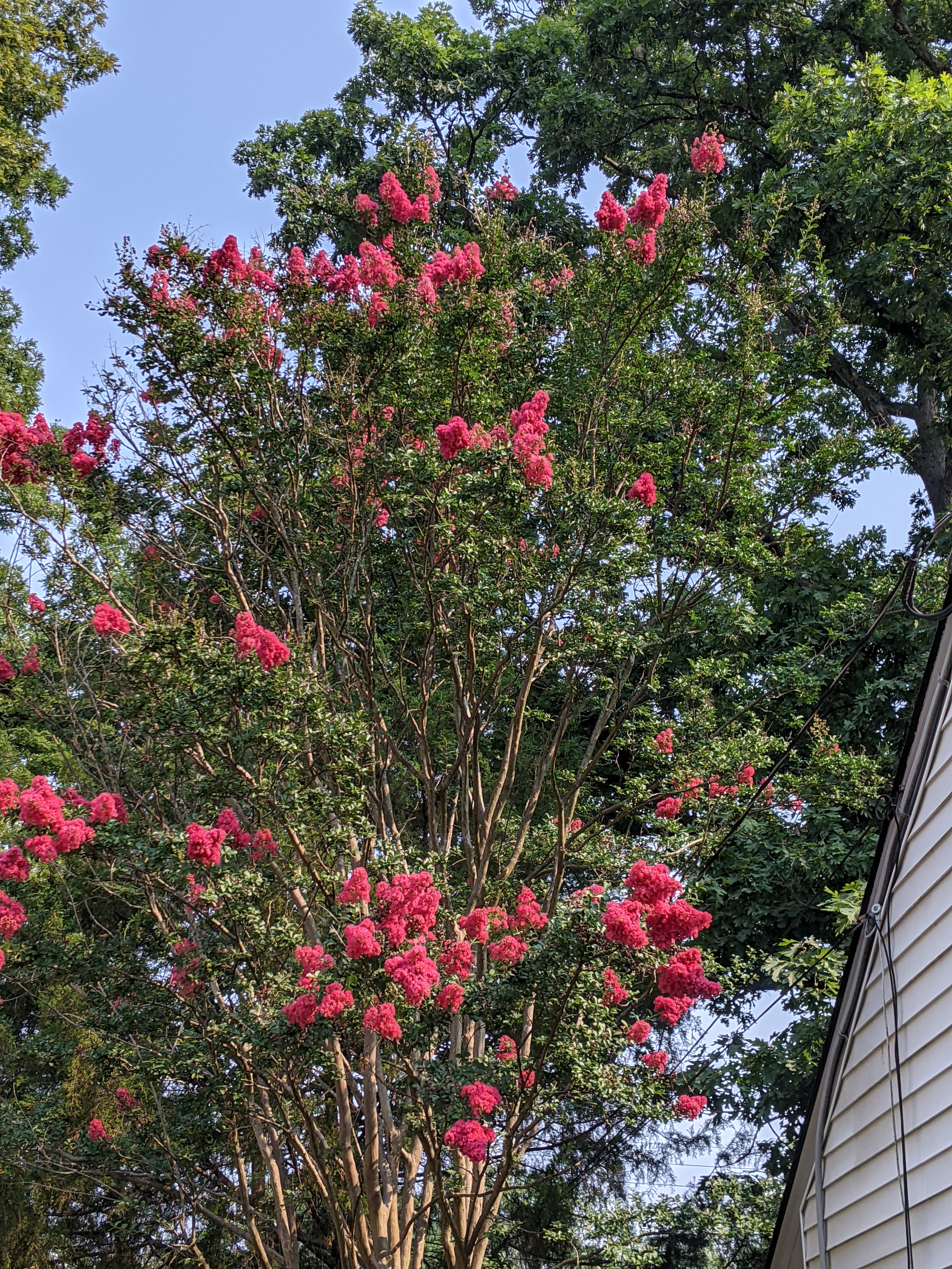 The Joe Pye weed is just coming into bloom, a bit shorter than usual since I gave it the Chelsea chop. And the butterfly bush is still going strong.