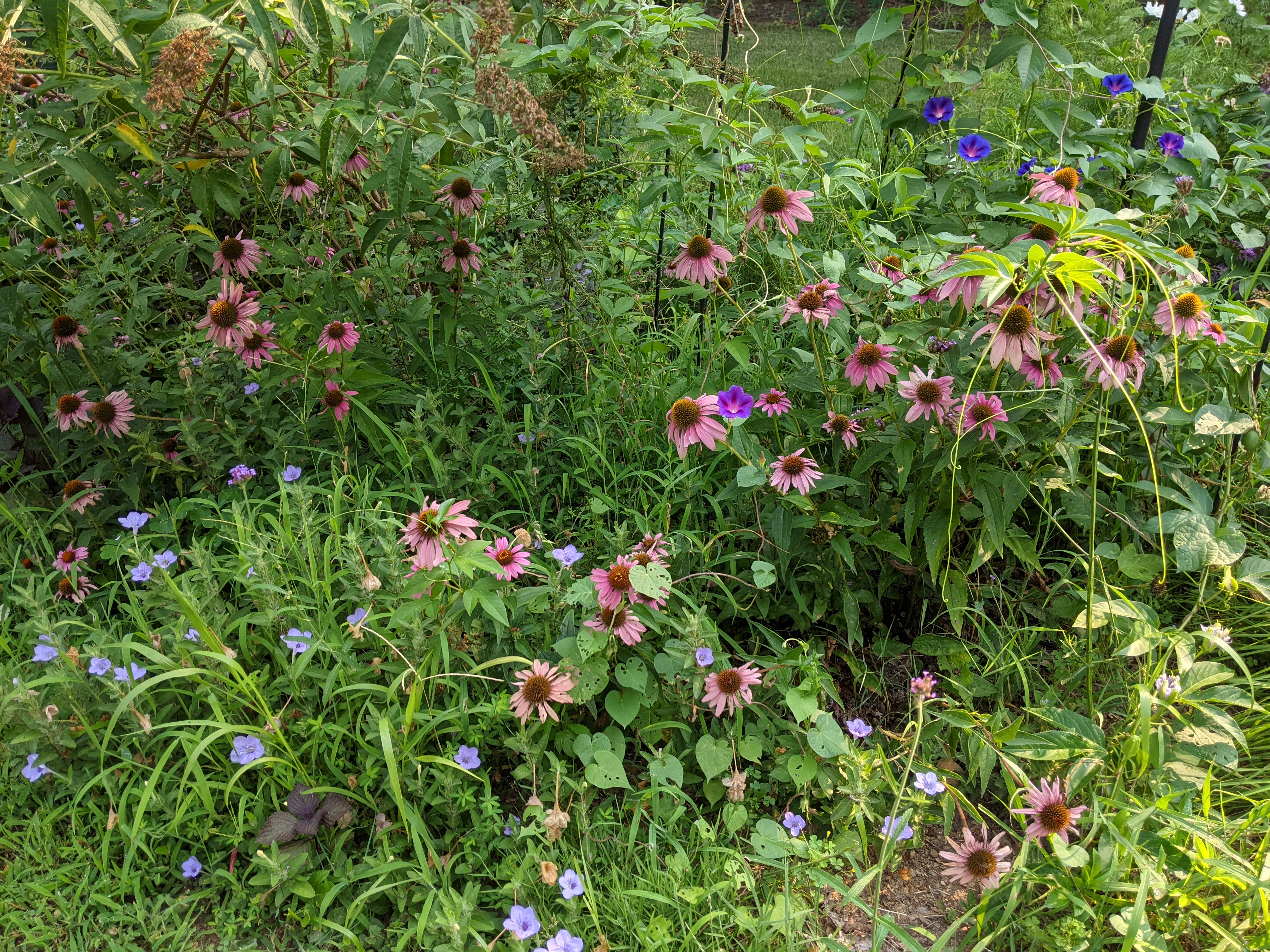 July in Virginia is usually even hotter than August, but this year August might be winning. A week of highs approaching and exceeding 100 degrees is giving way this week to high humidity and daily showers. Better than drought, I guess? Of course, the sunny garden is an absolute JUNGLE at this point, and it’s too wet to weed it. Maybe next week.