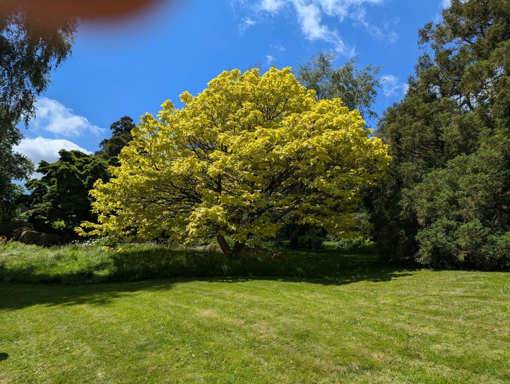 The approach to the house winds along a gentle slope, featuring a couple of these gorgeous trees