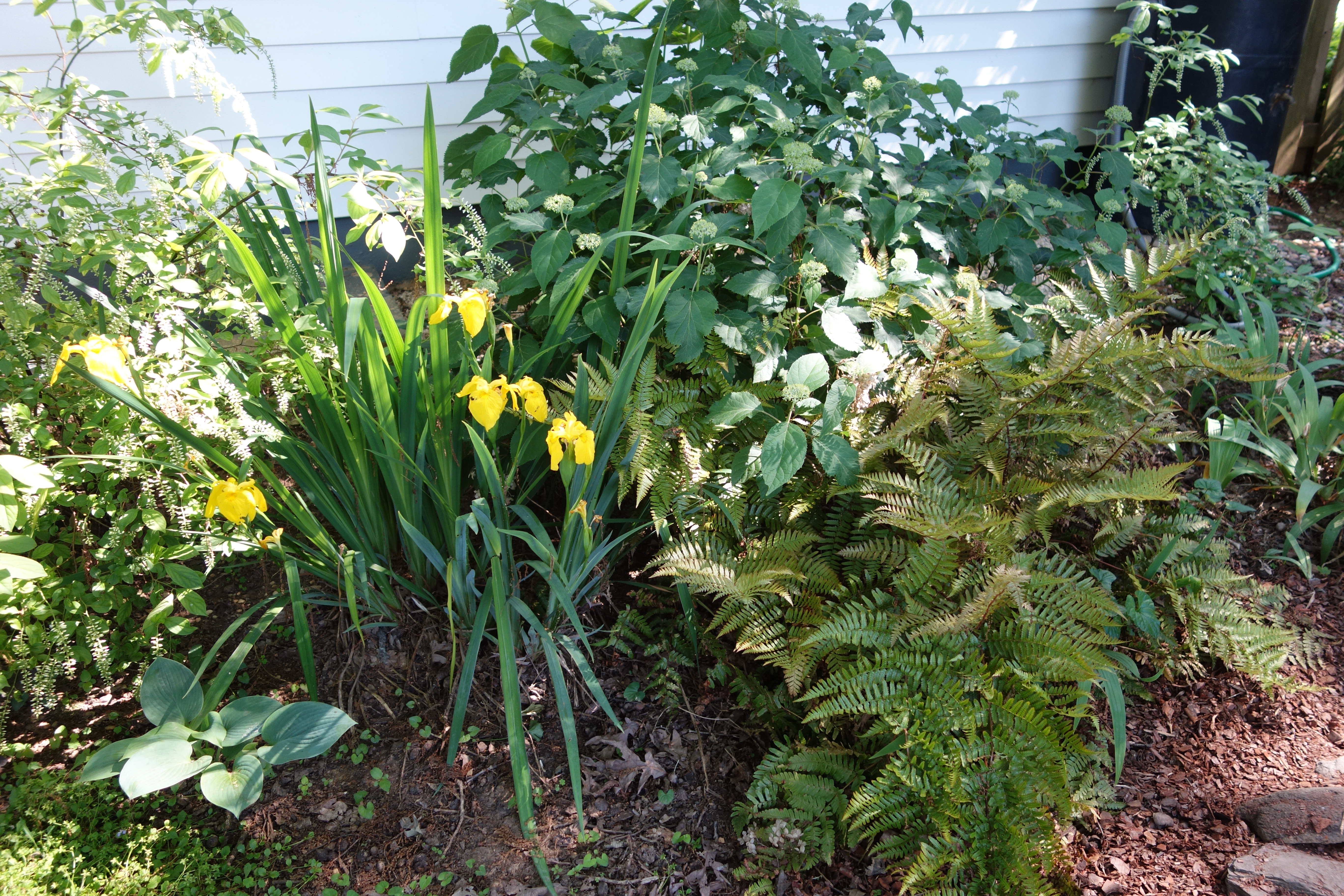 Again, no before pictures but imagine this sloping down towards the foundation wall, scraggly as can be. Now it’s nice and level!