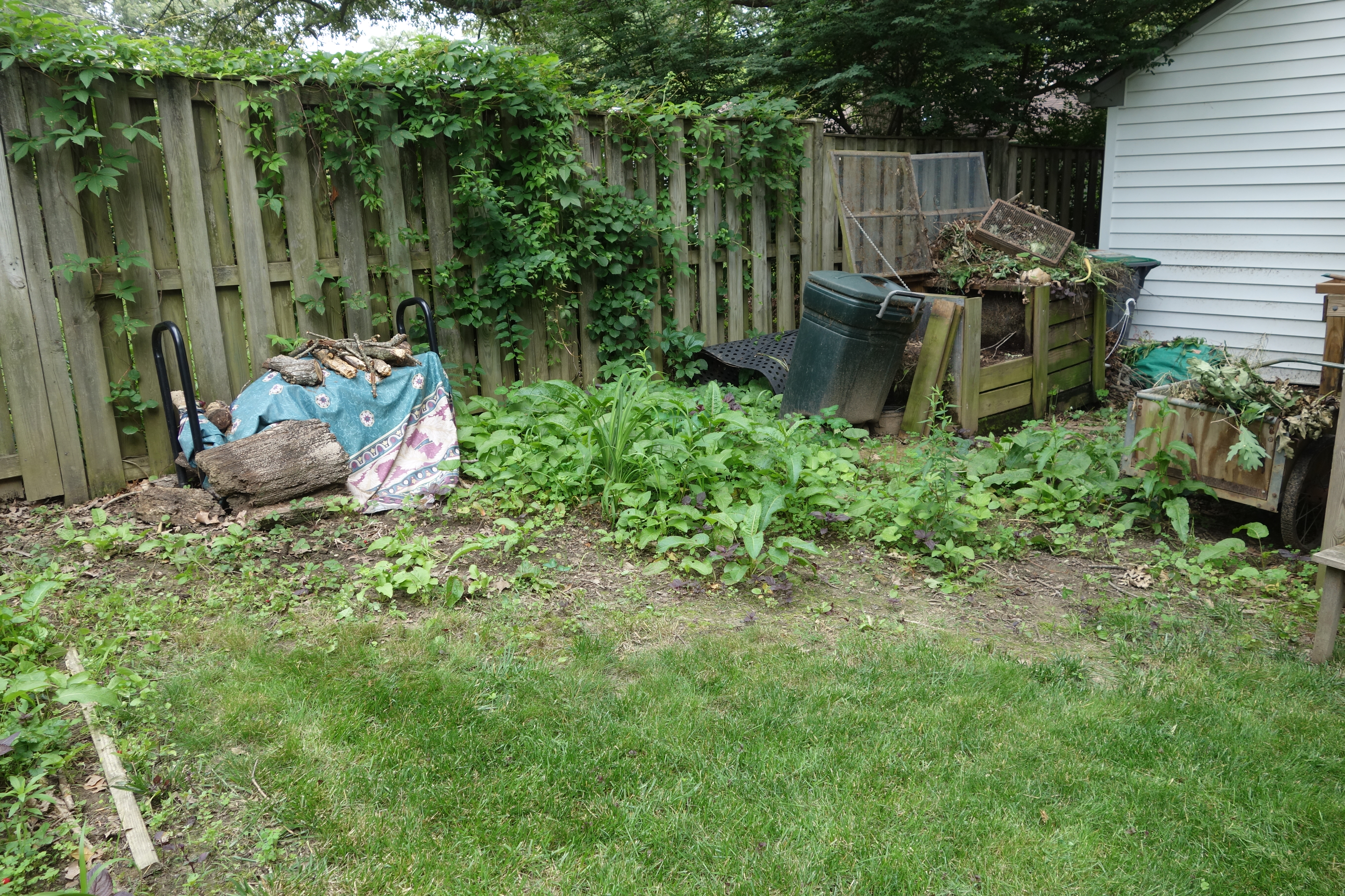 You need to imagine this space with some greenery that makes the downspout fade into the background… More planting to come this fall.