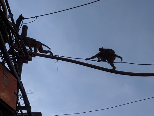 And over our heads the monkeys were navigating along the wires, just the way squirrels do at home.