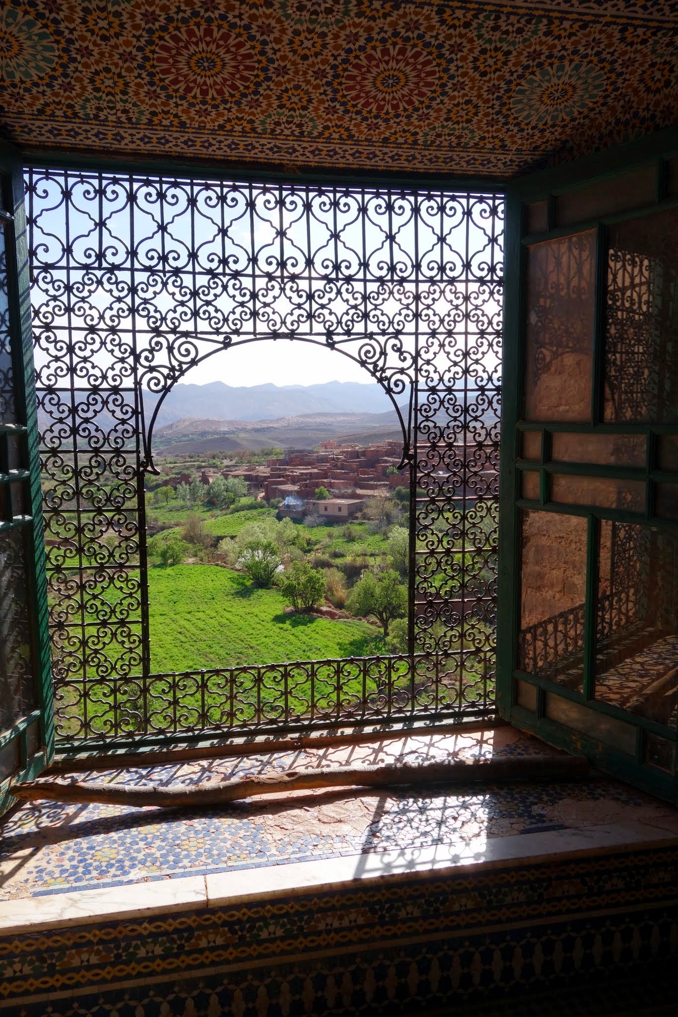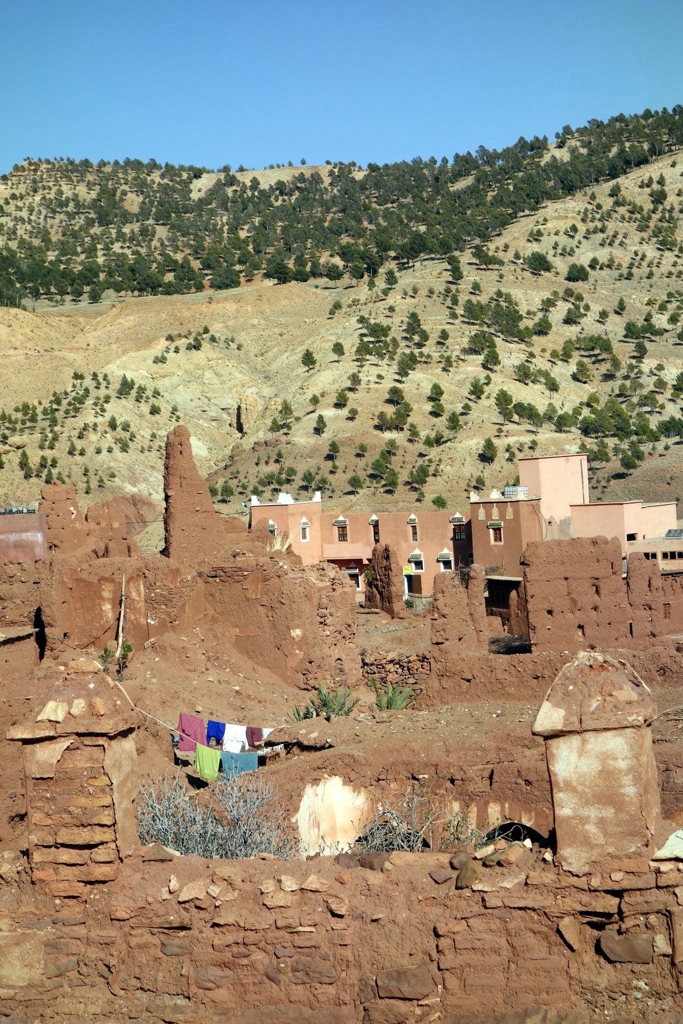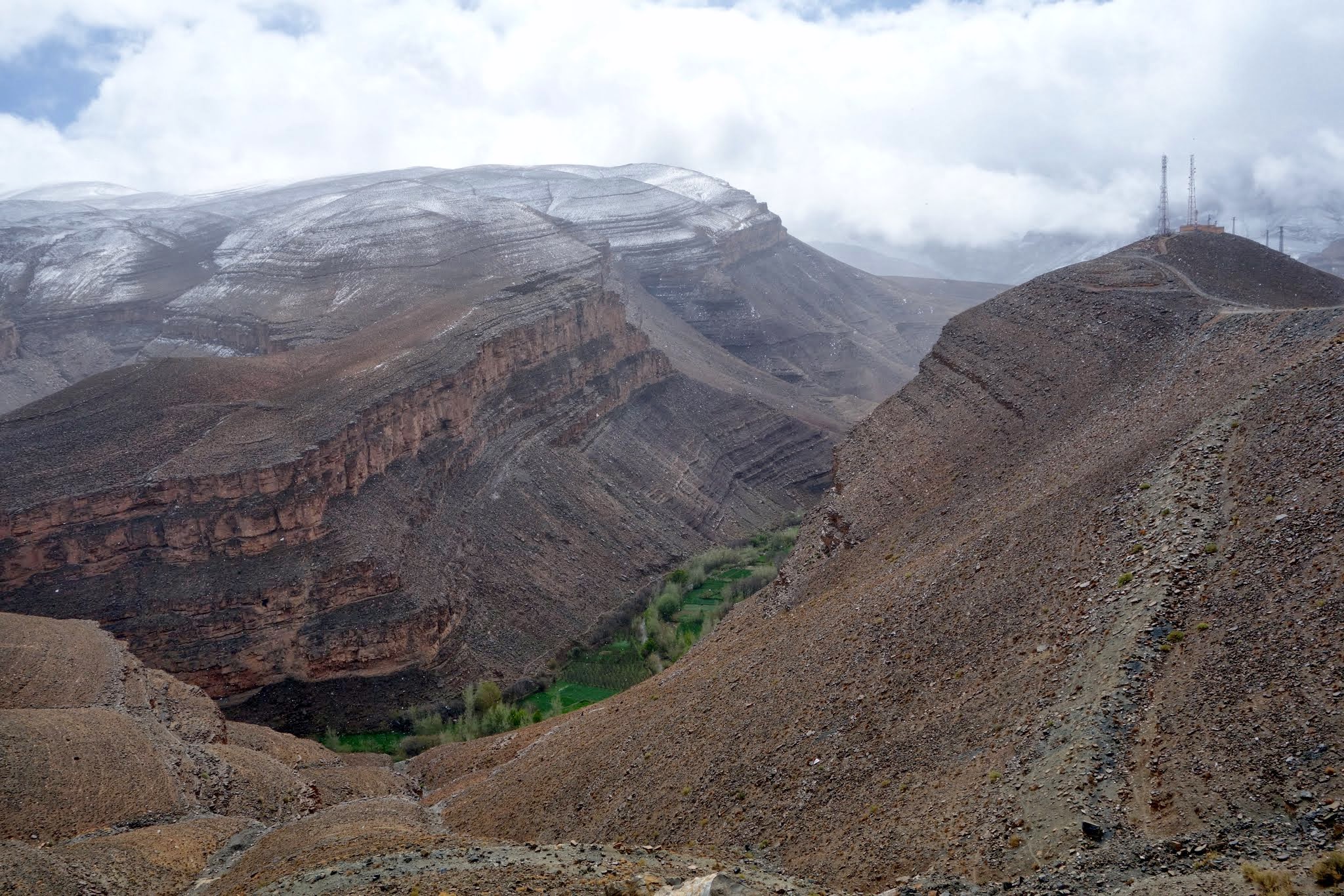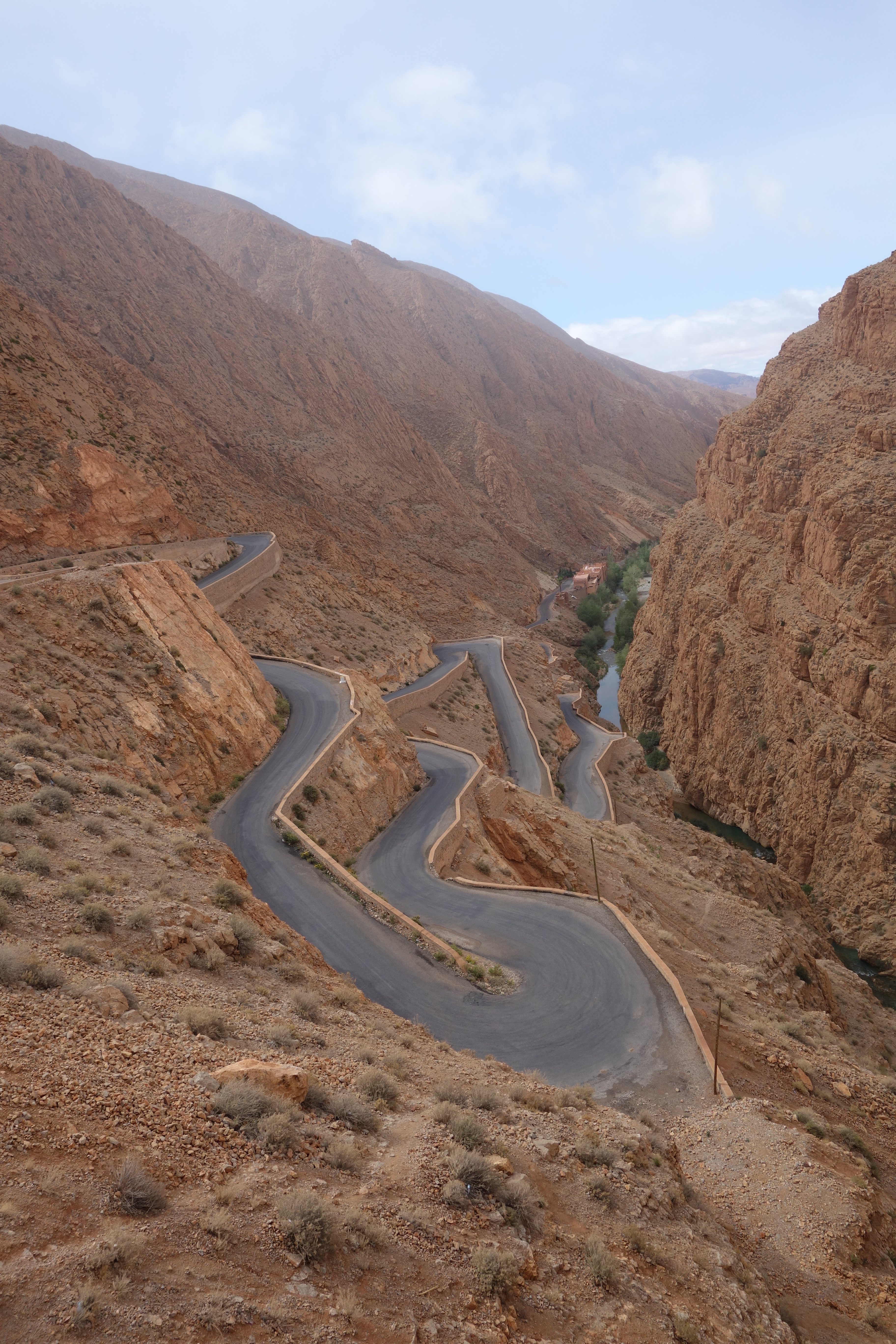 And then we continued to go up. We were in the High Atlas mountains now. Down below are the gardens growing on the lush valley floor,
