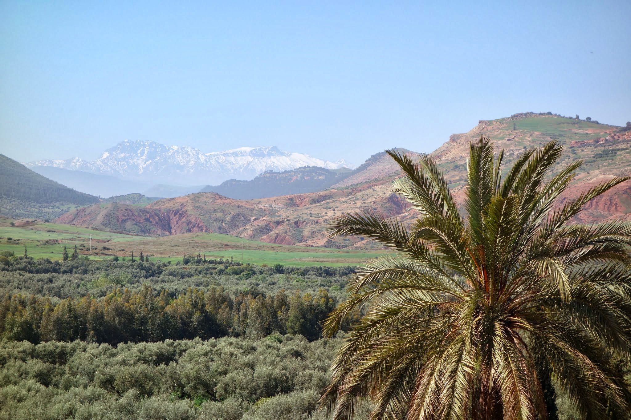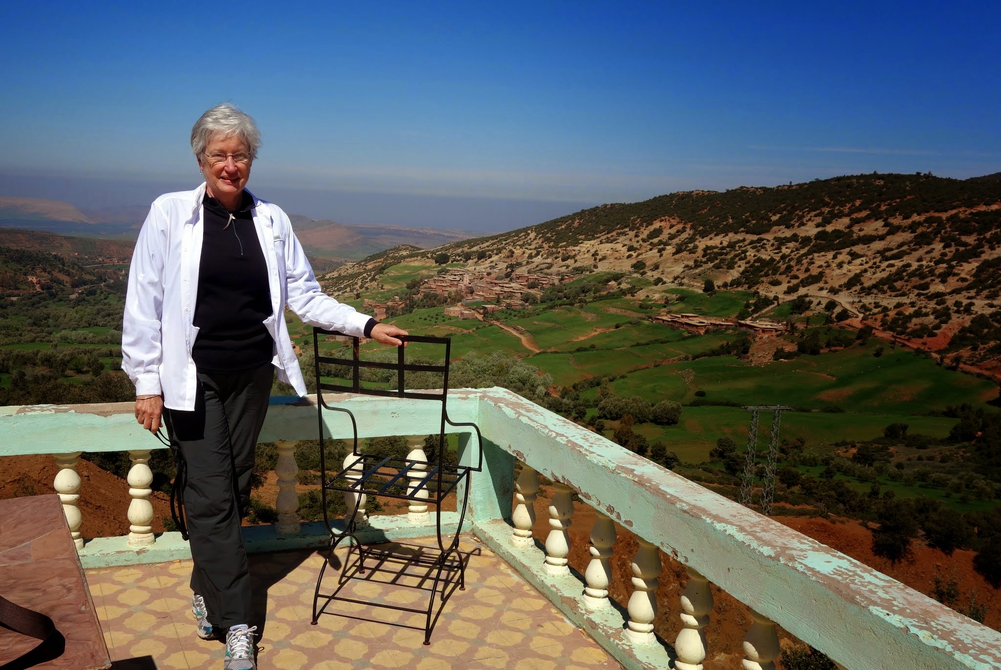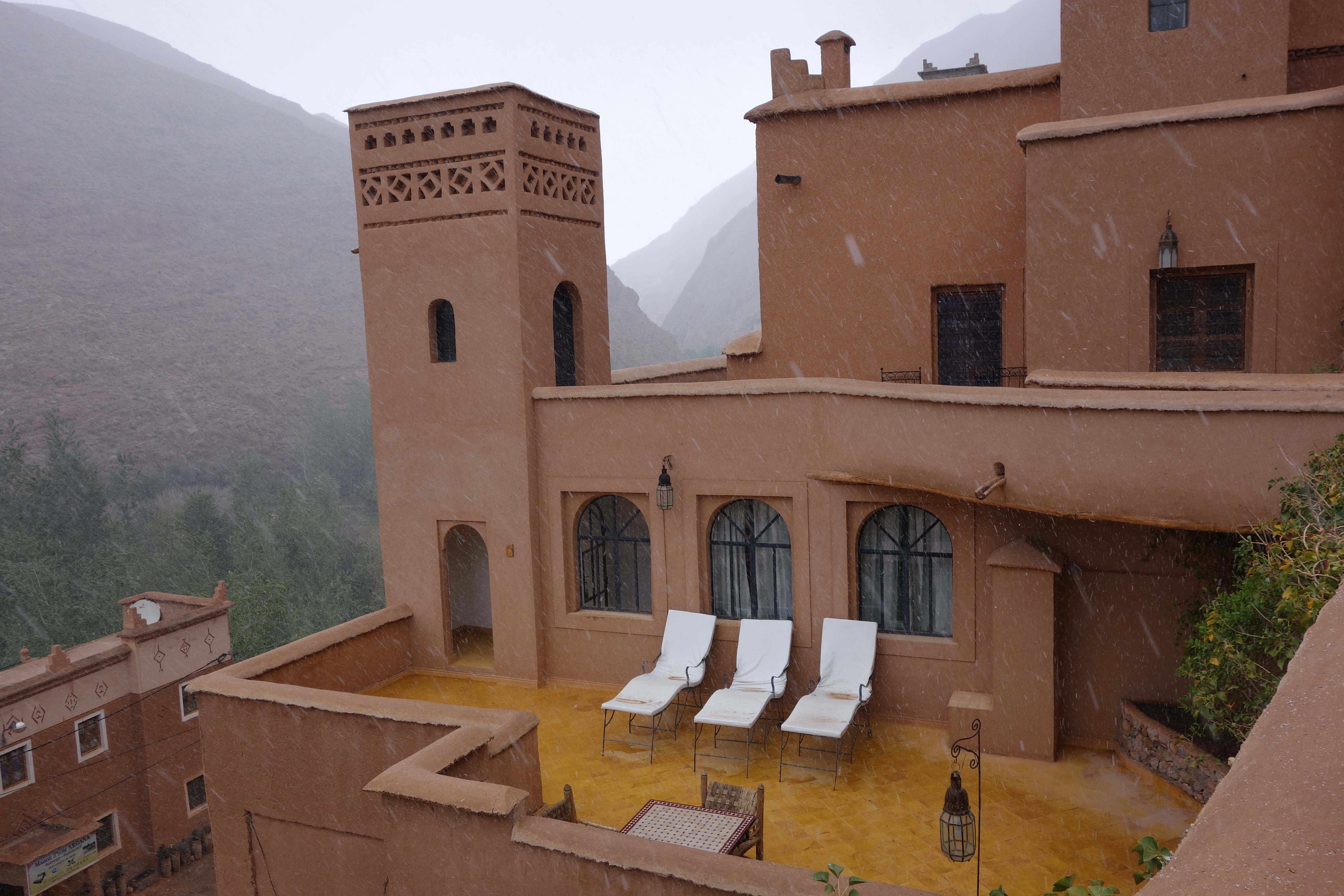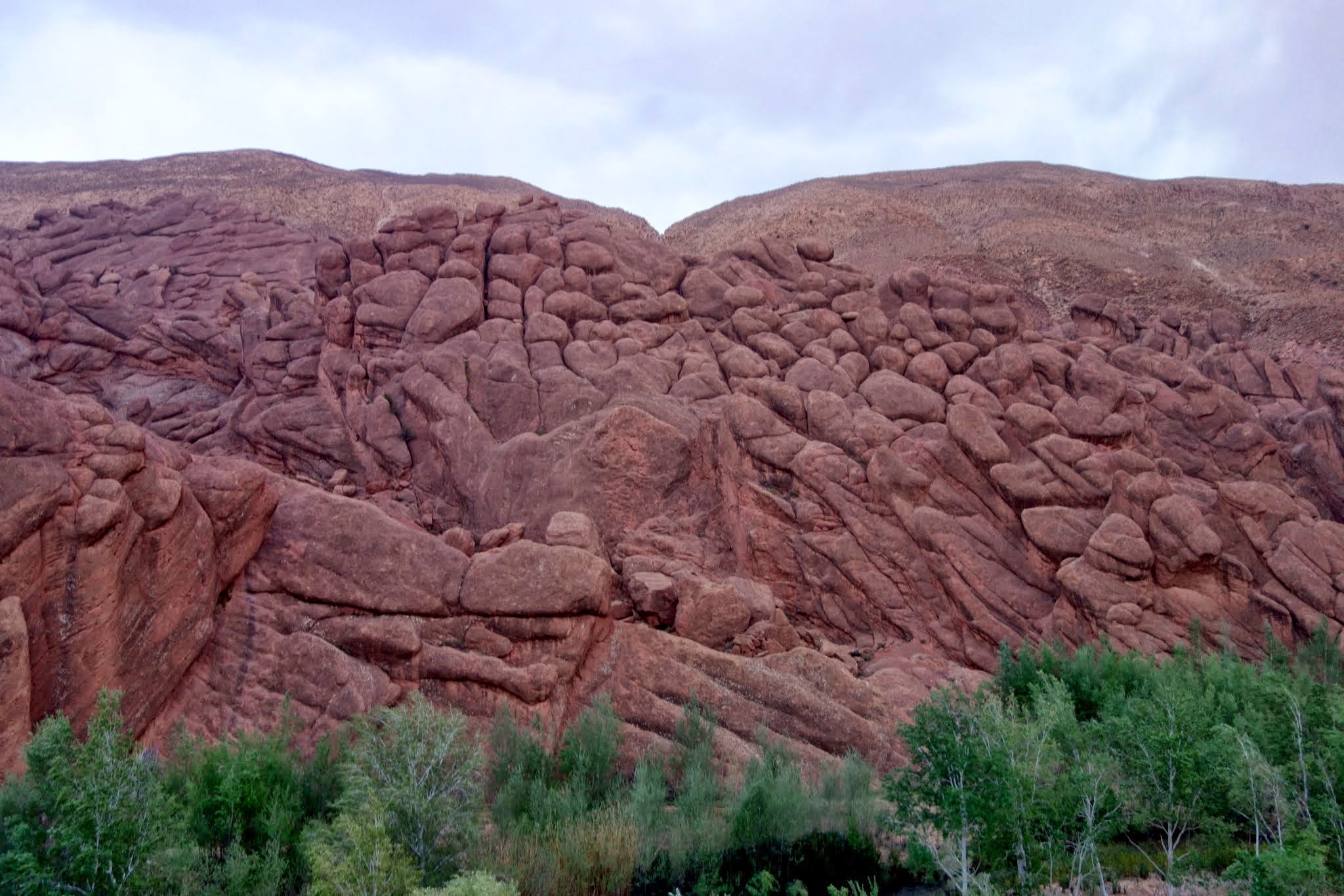 And then we continued to go up. We were in the High Atlas mountains now. Down below are the gardens growing on the lush valley floor,