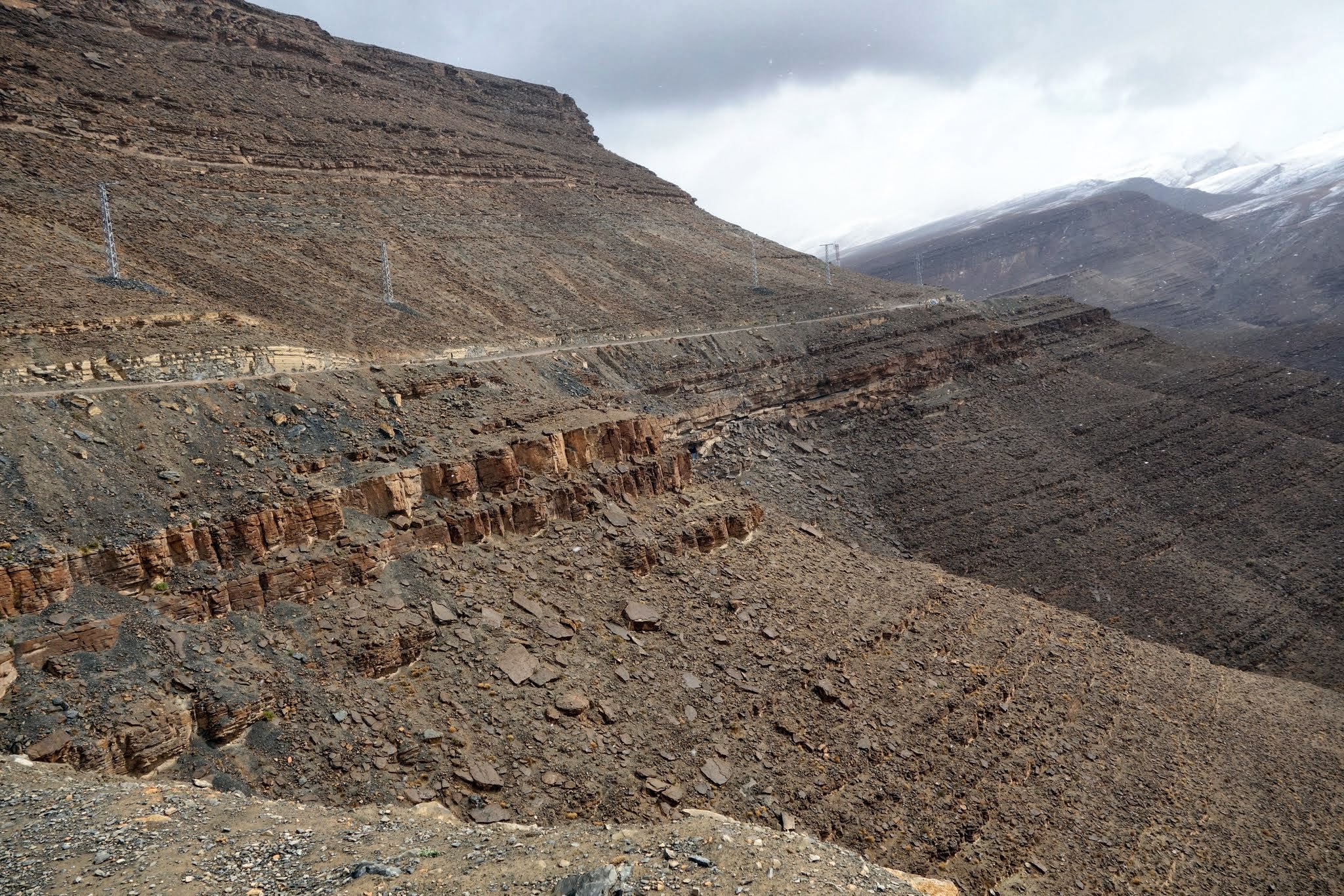 apple, fig and pomegranates along with green crops like fava beans and barley. But up above there was snow again, beautifully outlining the striations in the mountains.