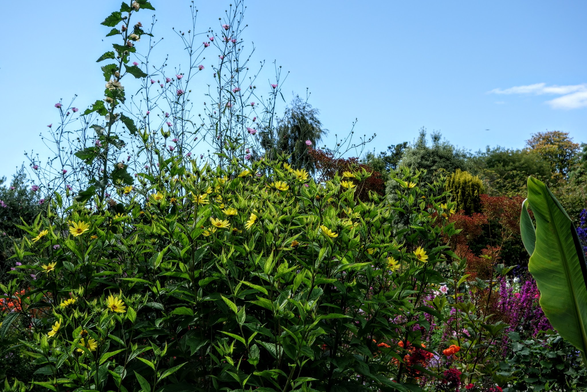 I have a love/hate relationship with my helianthus, which I sometimes call helenium (see, there are several issues). The first year, it blew over in a storm and crushed the plants beneath. Then it spread vigorously, so that I have had to root it out. Plus, it is so tall that I now give it the Chelsea chop in early summer so that it doesn’t get too big and then fall like a giant redwood.