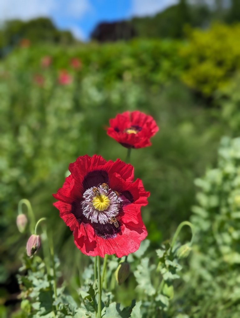 This morning we looked out the window at blue skies and decided to go to the Royal Botanic Garden while the weather held. We walked over to the North Bridge and picked up the bus, with a bit of help from the kilt-clad man at the door of the Balmoral Hotel. When the ticket taker told us the blue poppies were in bloom, that was all I needed to hear. They have a reputation for being extremely difficult to grow, and because they come from Nepal or China or somewhere I did not expect ever to see them. They were amazing, so blue and so many of them. They were even more enchanting close up.