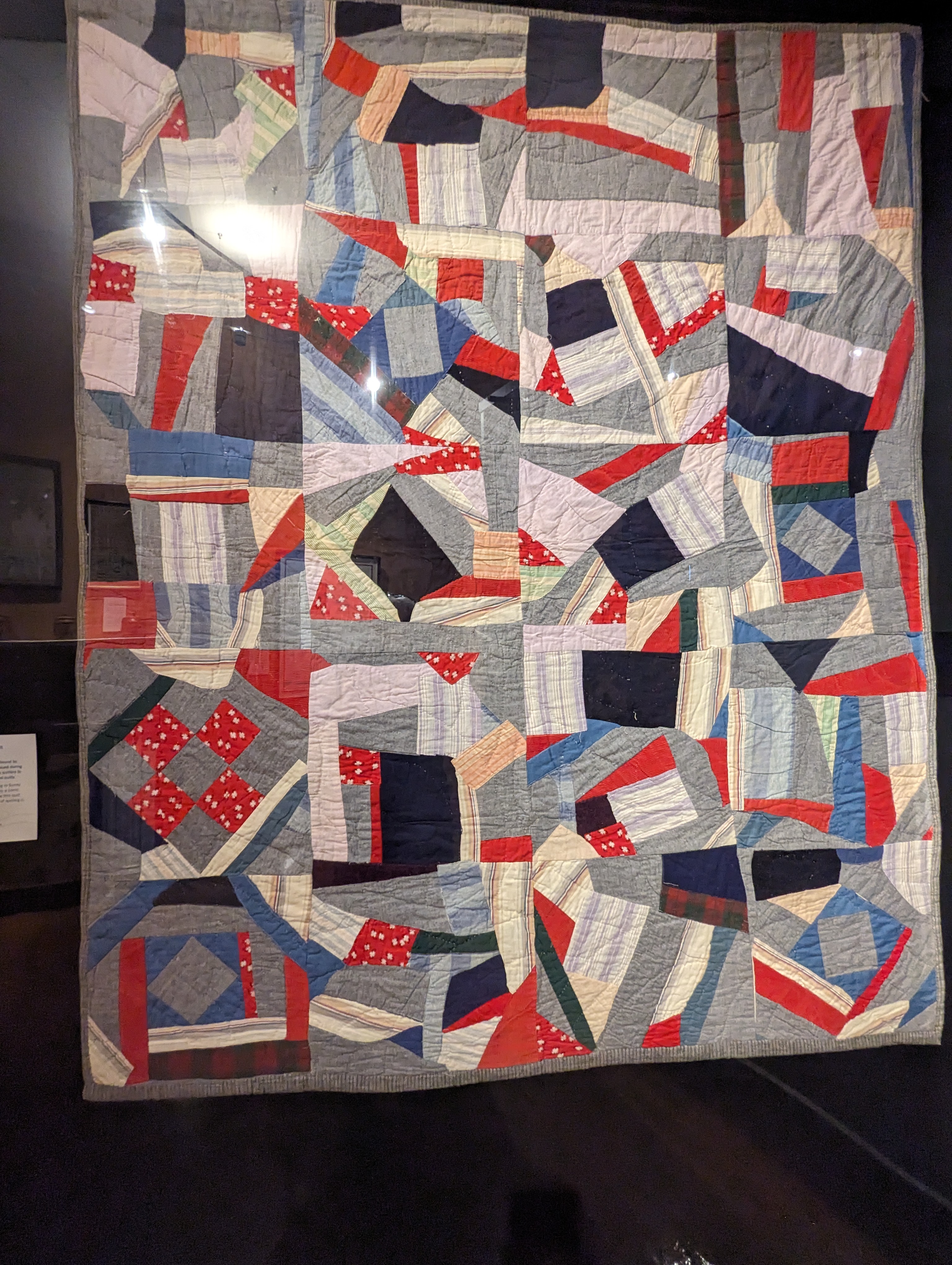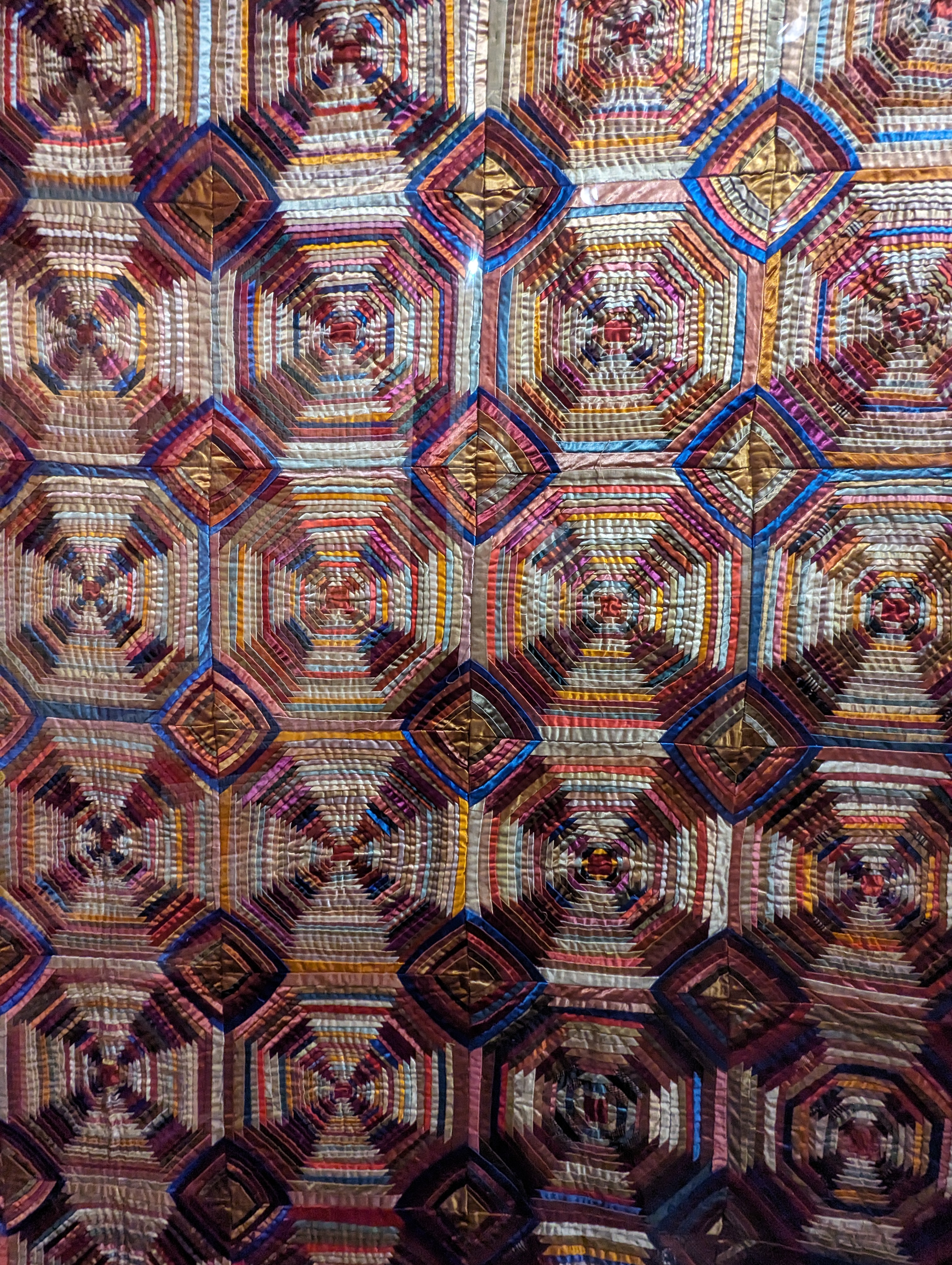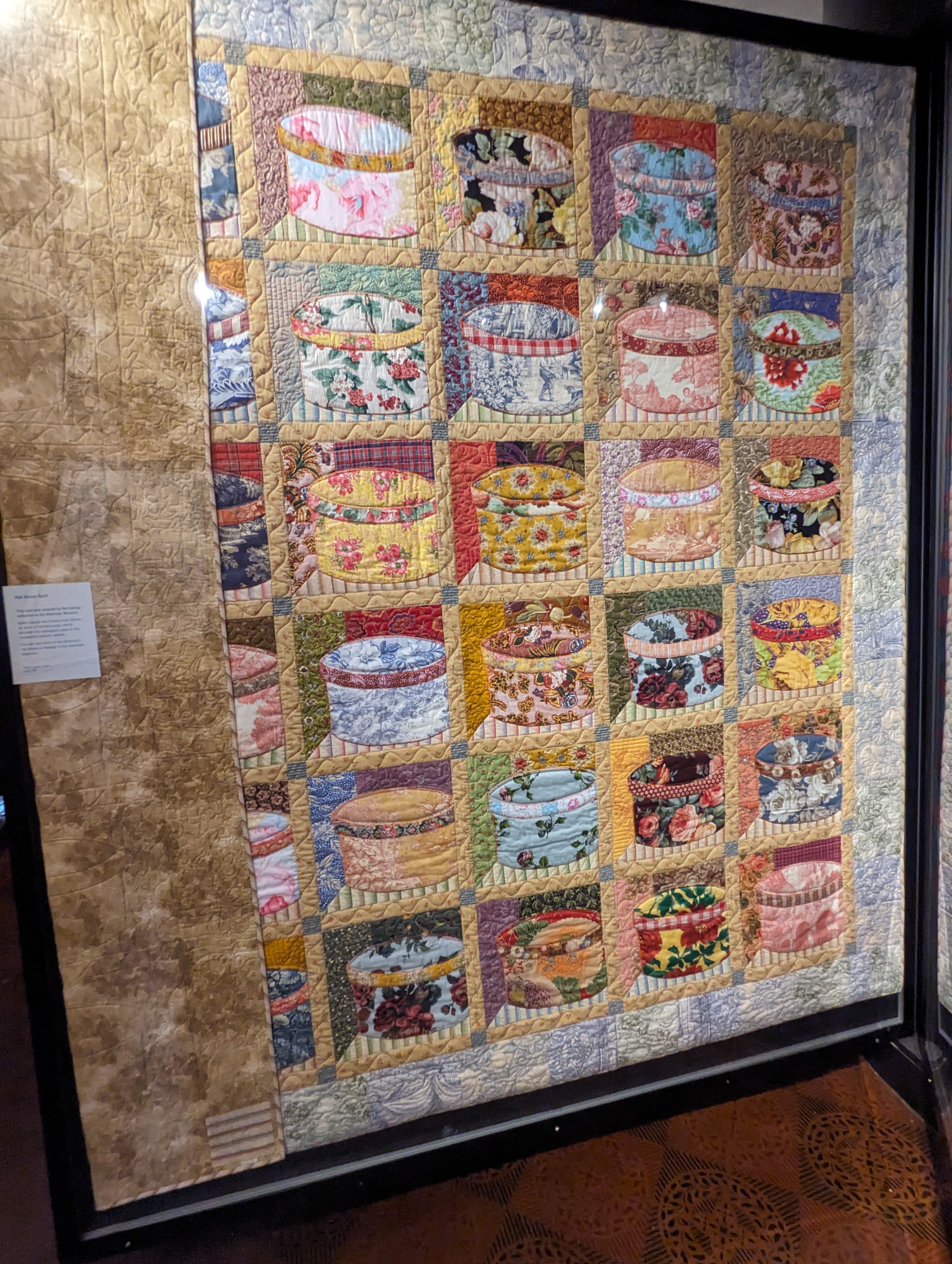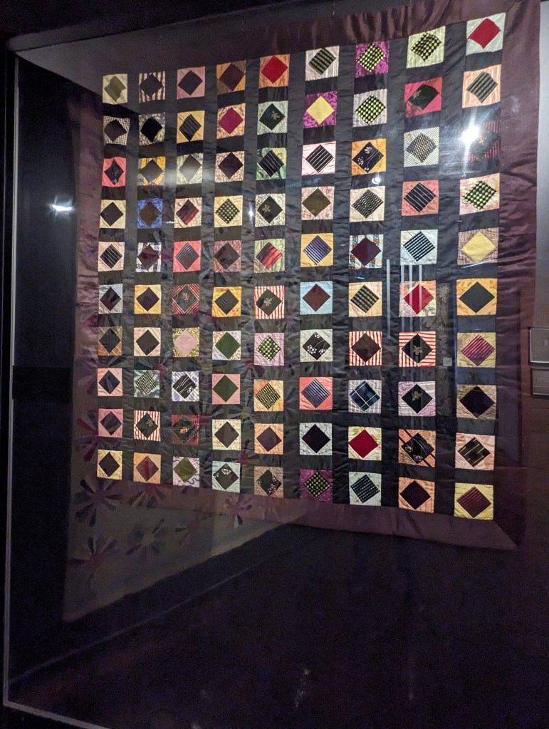 The men also amassed a collection of around 250 quilts, with 50 on display at any given time. They were nicely displayed on panels that allowed viewers to see every detail. This collection too was quite eclectic, ranging from an elegant silk log cabin,