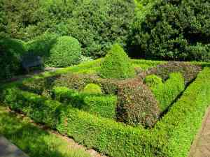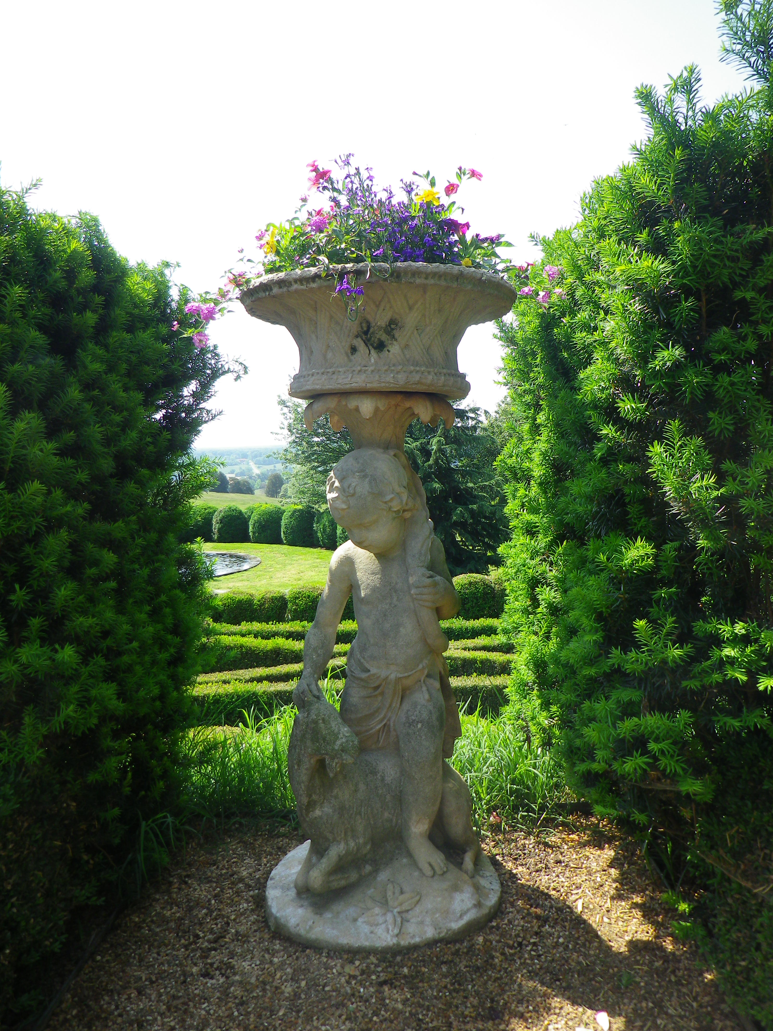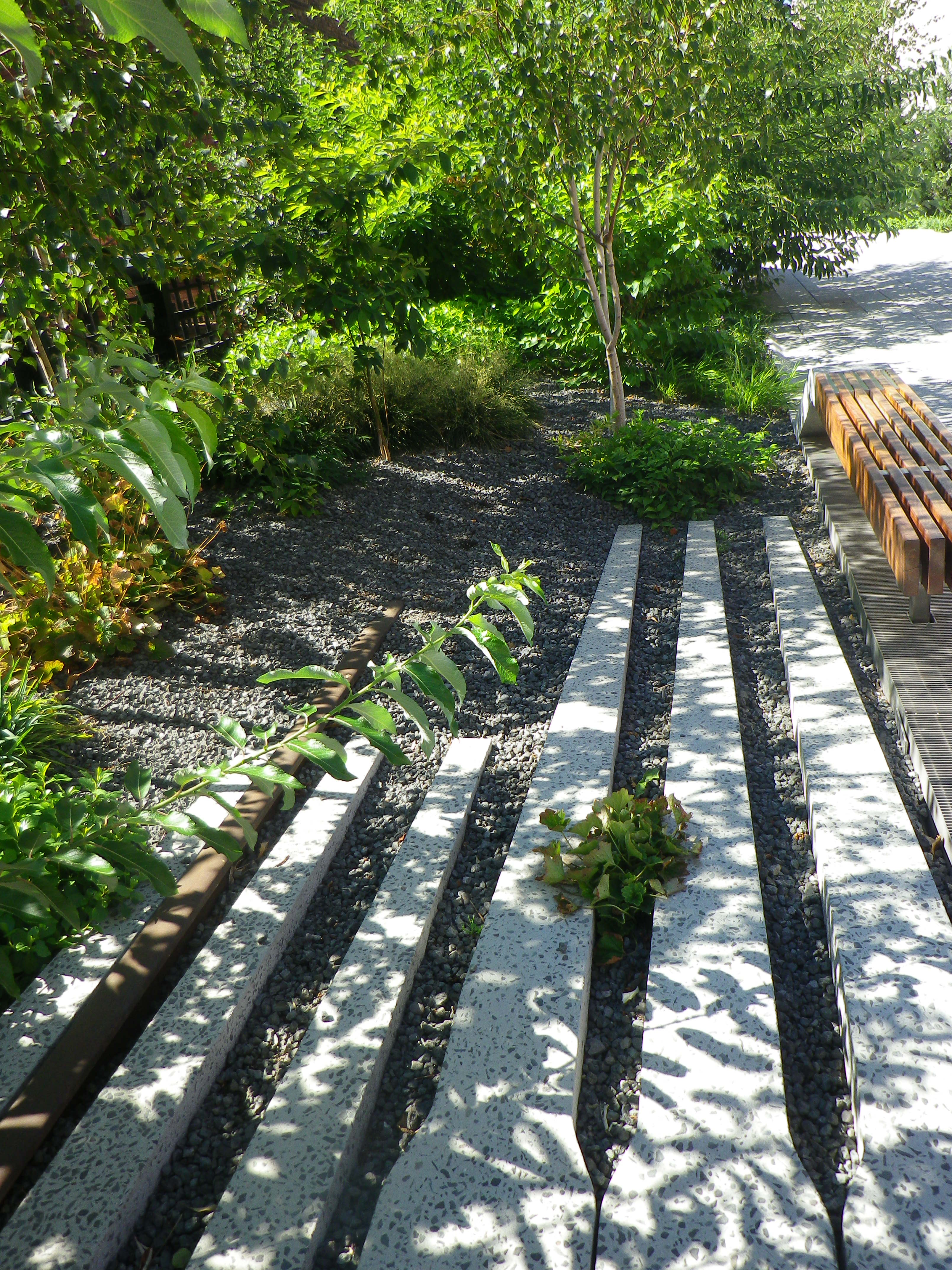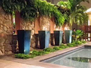 This poolside garden exhibit appealed mightily to me. Unfortunately, I don’t think I’m the kind of gardener who could sustain the gorgeous simplicity of this row of geometric pot fountains. But I can certainly admire it from afar.
