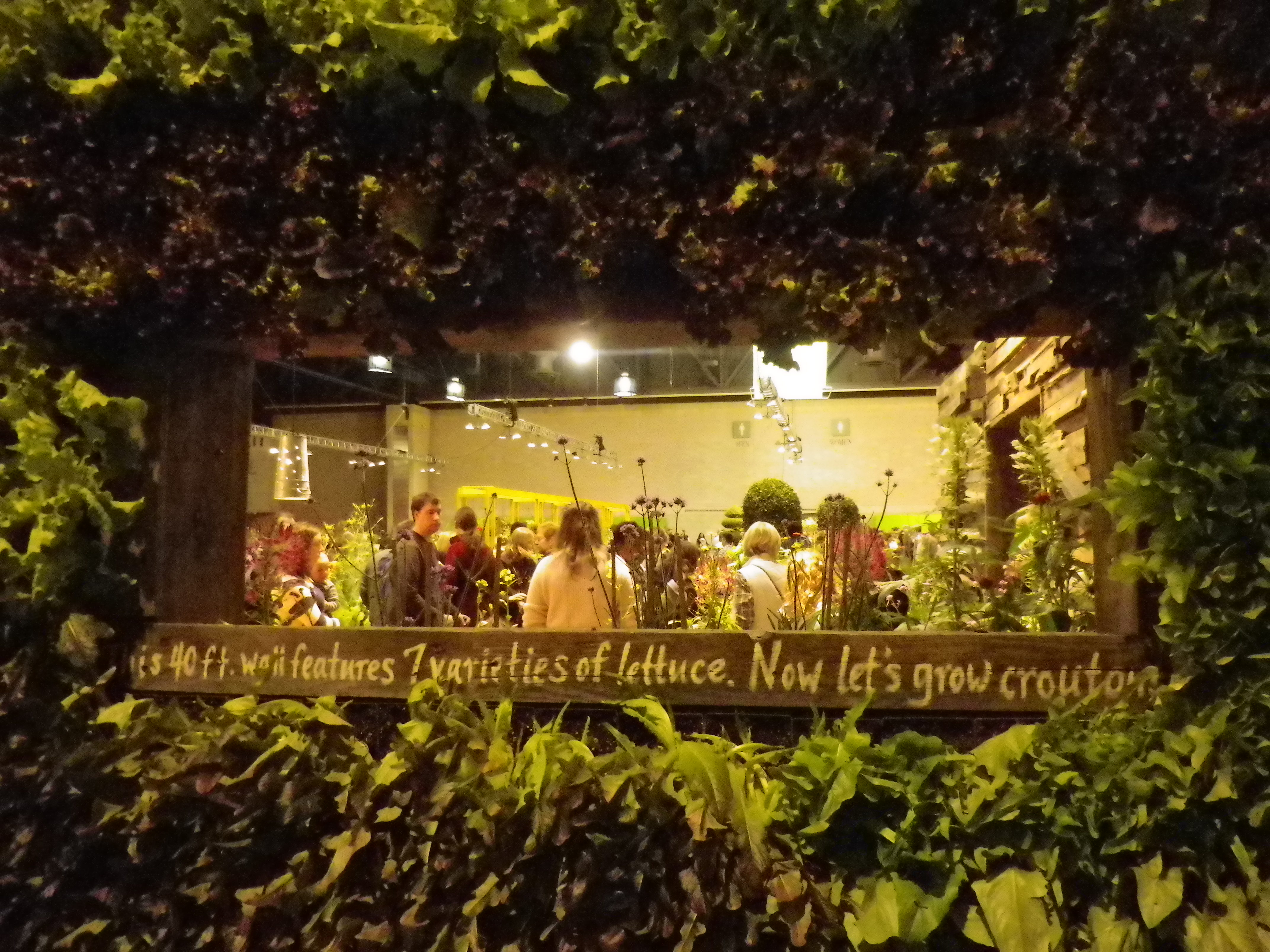 One of my favorite exhibits was from the Pennsylvania Horticulture Society, which mounted a mixed vegetable and flower garden display that knocked my socks off. First there is the WALL of lettuce, with a one-way mirror inserted. Love the quote.