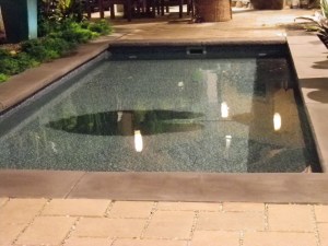 The simple pool was enhanced by the reflection of an enormous tropical leaf from the plantings nearby.