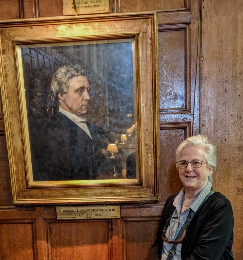 the dining hall impressive with Alice references in the windows as pointed out by a porter (look closely to see Alice and other characters hiding at the bottom of each window).