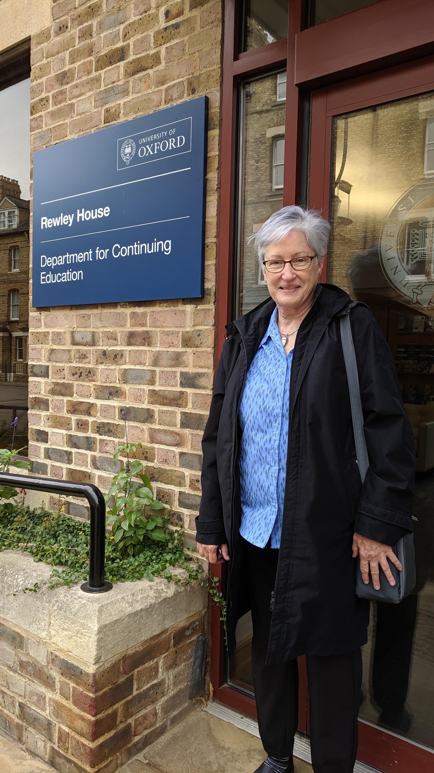 Dinner tonight was literally around the corner at the renowned Turf Tavern, where we had steak and ale pies and french fries that made us both very happy. We admired the hanging baskets of flowers and the late sun on the New College bell tower.