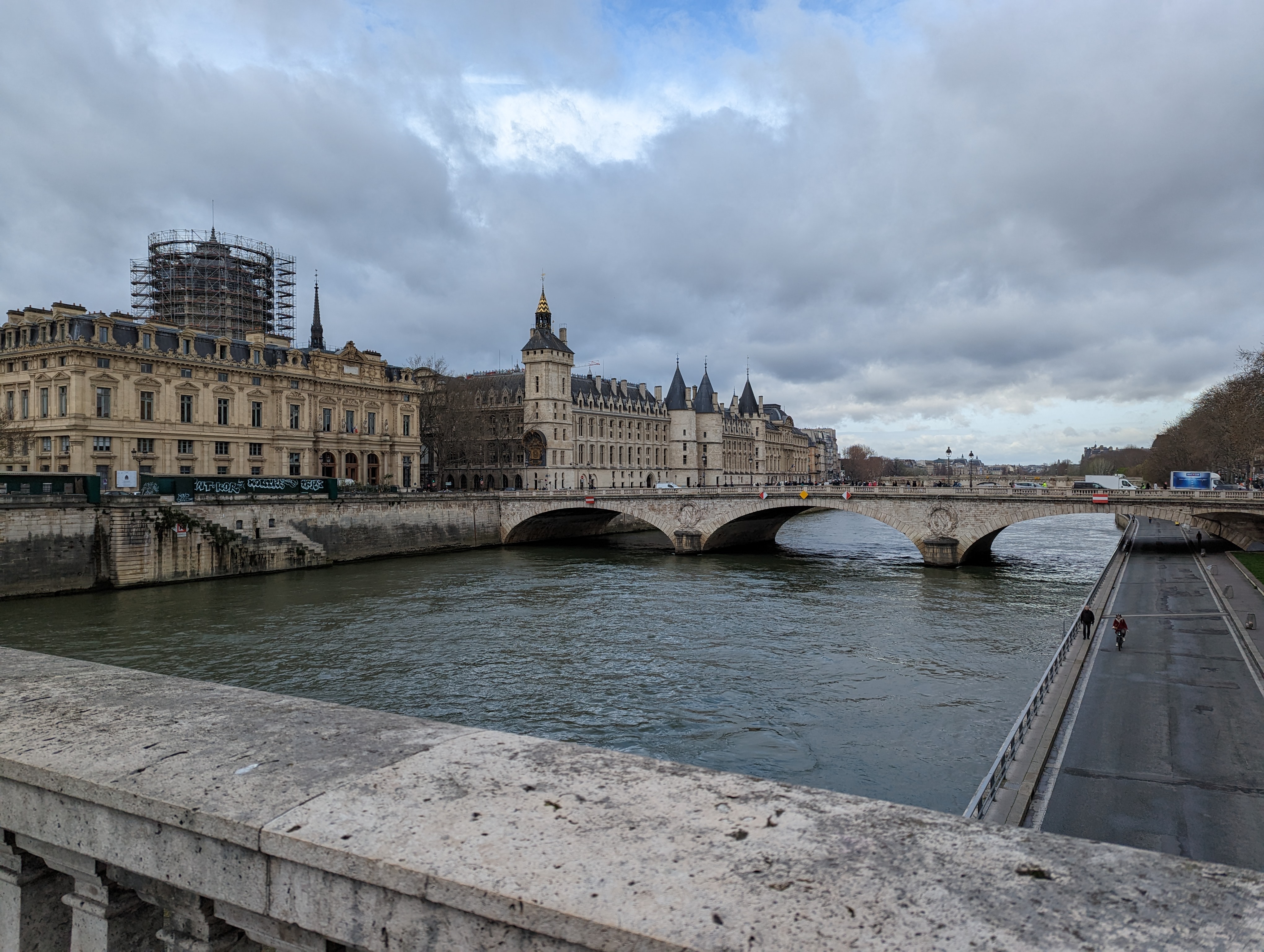 We walked along the Seine, with another view of Notre Dame swathed in scaffolding,