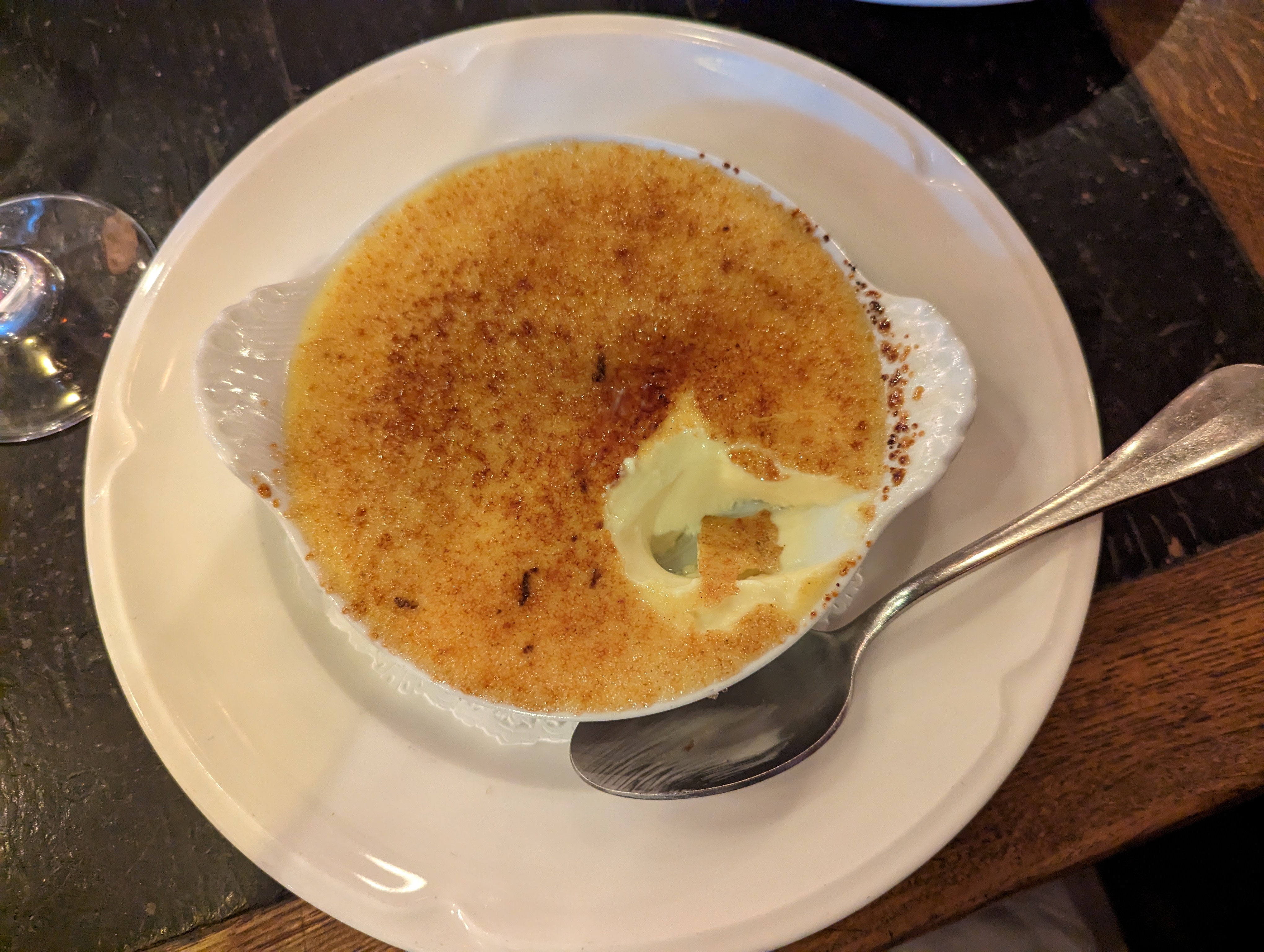 Then, because it was Silla’s last night with us, we splurged on creme brulee for us two, while AO had tarte tatin, and we were all delighted.