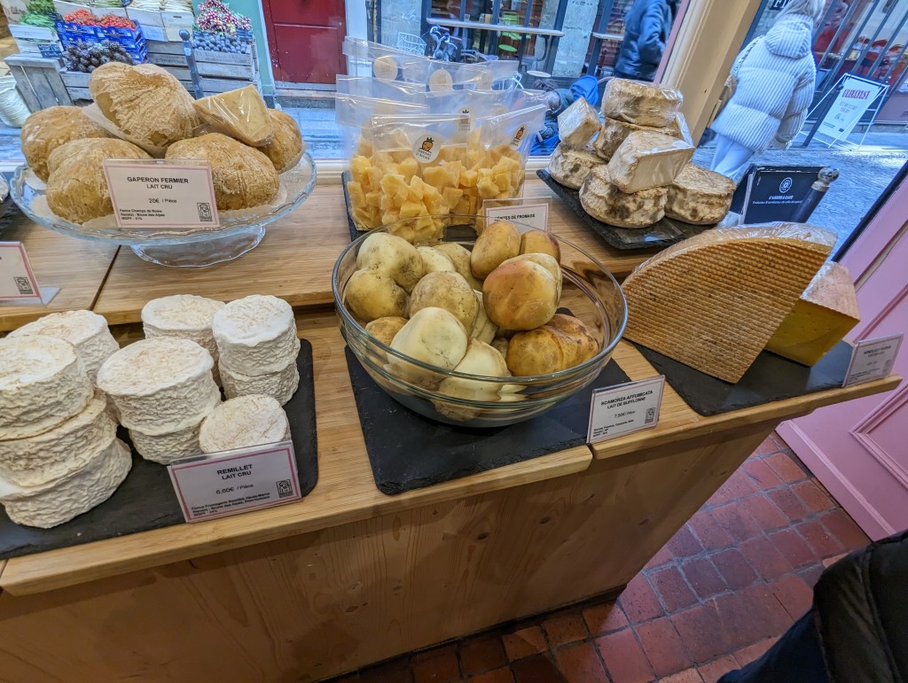Silla’s train left at 2:00, so we just had a leisurely stroll around the neighborhood before lunch. We walked down Rue du Nil, first “attested” back in 1590 and made famous recently by a chef who has earned a Michelin star. For us it was only about a block away, with inviting shops: vegetables, cheese, chocolate, bread, fish, etc. We bought some cheese and wandered back to the apartment, had a decent but not exciting lunch at the restaurant next door, and then waved off Silla with kisses and tears. Hope to see her again at Gadenstaettli!