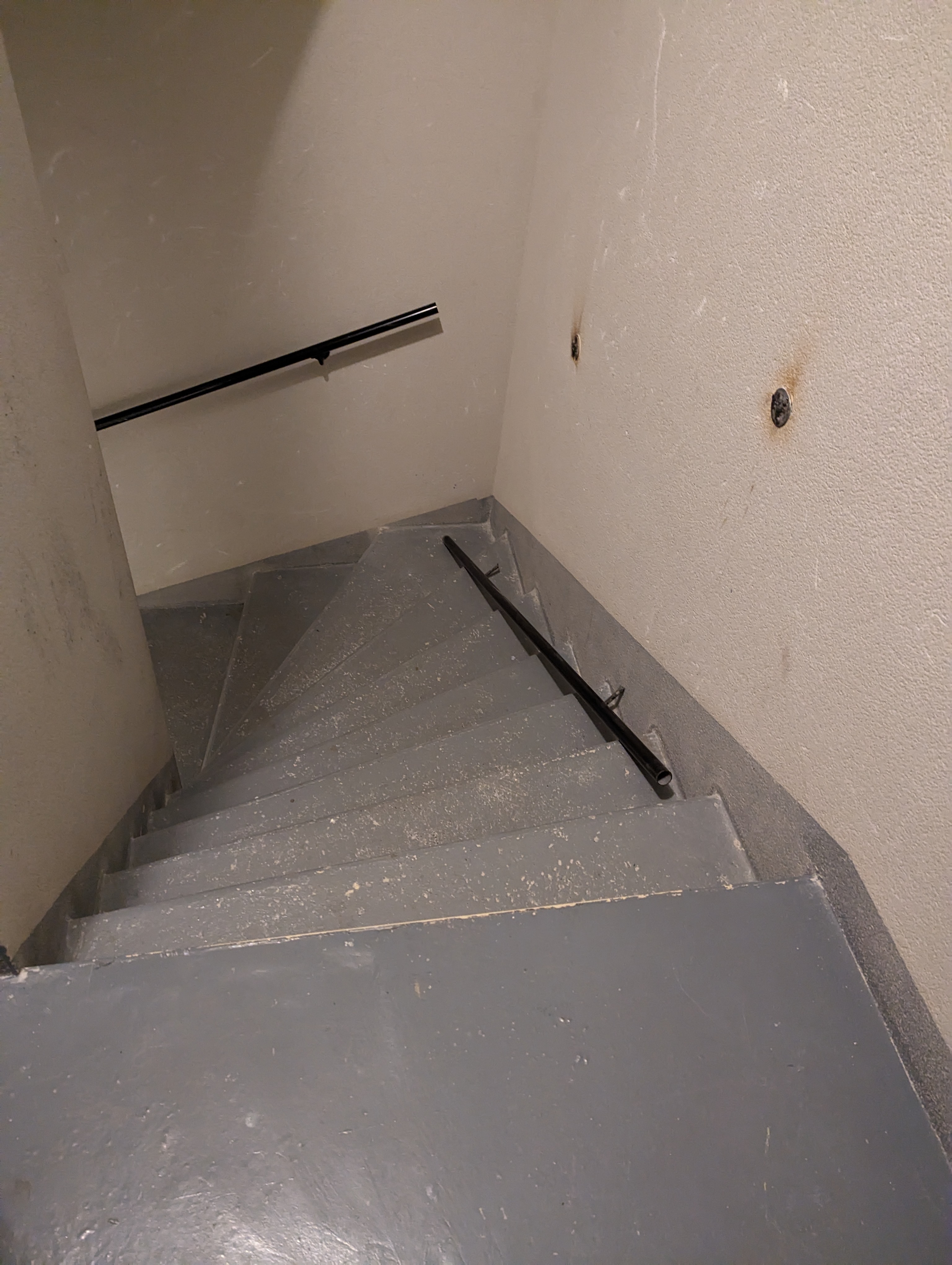 Meanwhile, the elevator had stopped working on Saturday and still was not fixed. We were worried about hauling our suitcases downstairs, especially since the handrails were lying on the floor, or even worse, attached at only one end, while the stairs were not only steep but winding.