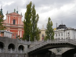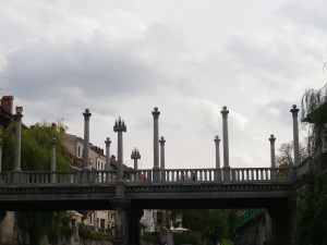 while the banks slid slowly by and we waved at people standing on the bridges. This is the Cobbler’s Bridge by the ubiquitous and beloved Slovenian architect Jozef Pleznik,