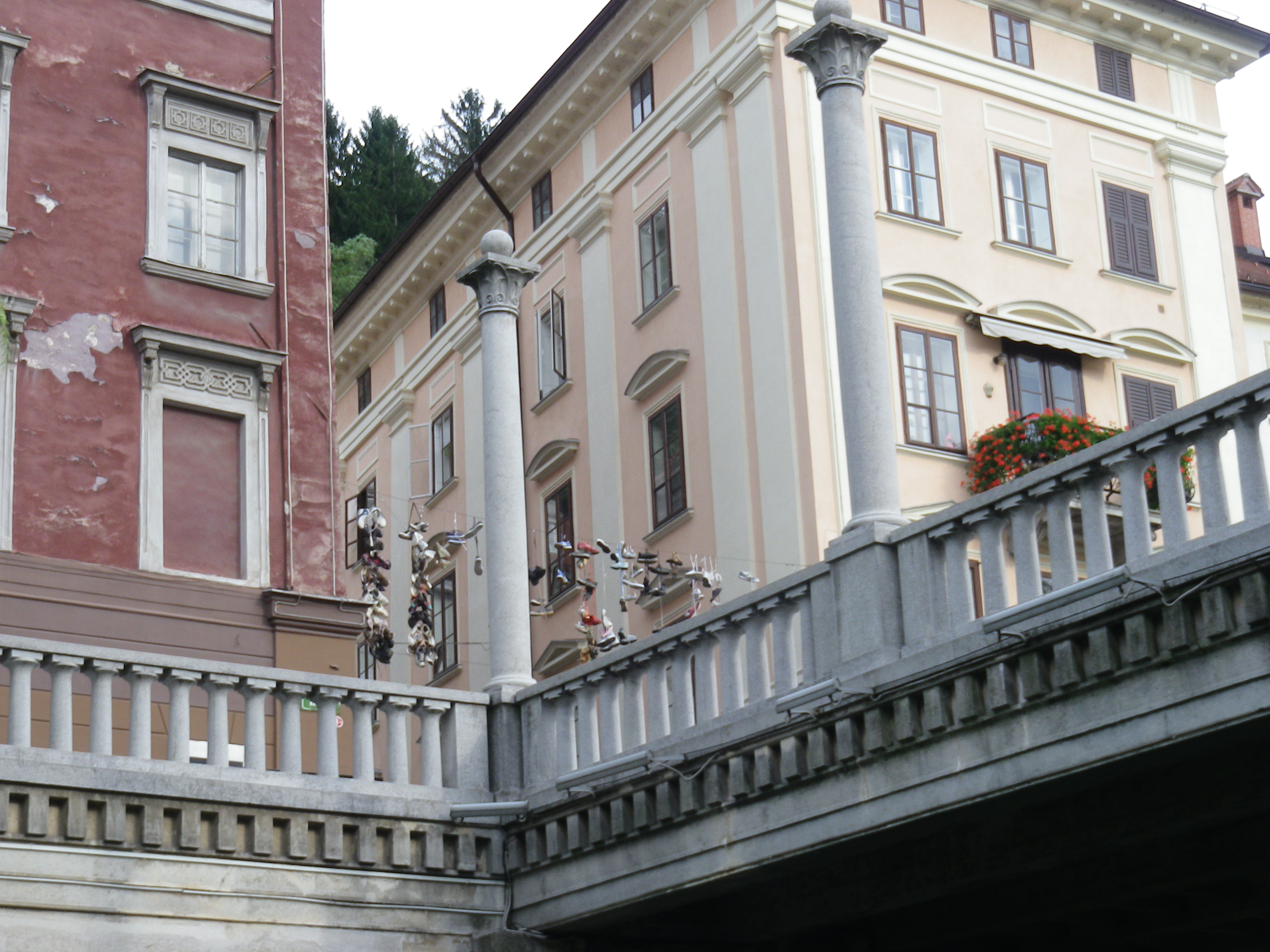 with a new feature at one end, shoes strung over a line.