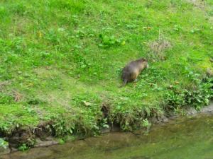 We watched the kids kayaking and a creature that the captain called a beaver but made me think more of a marmot chomping grass,