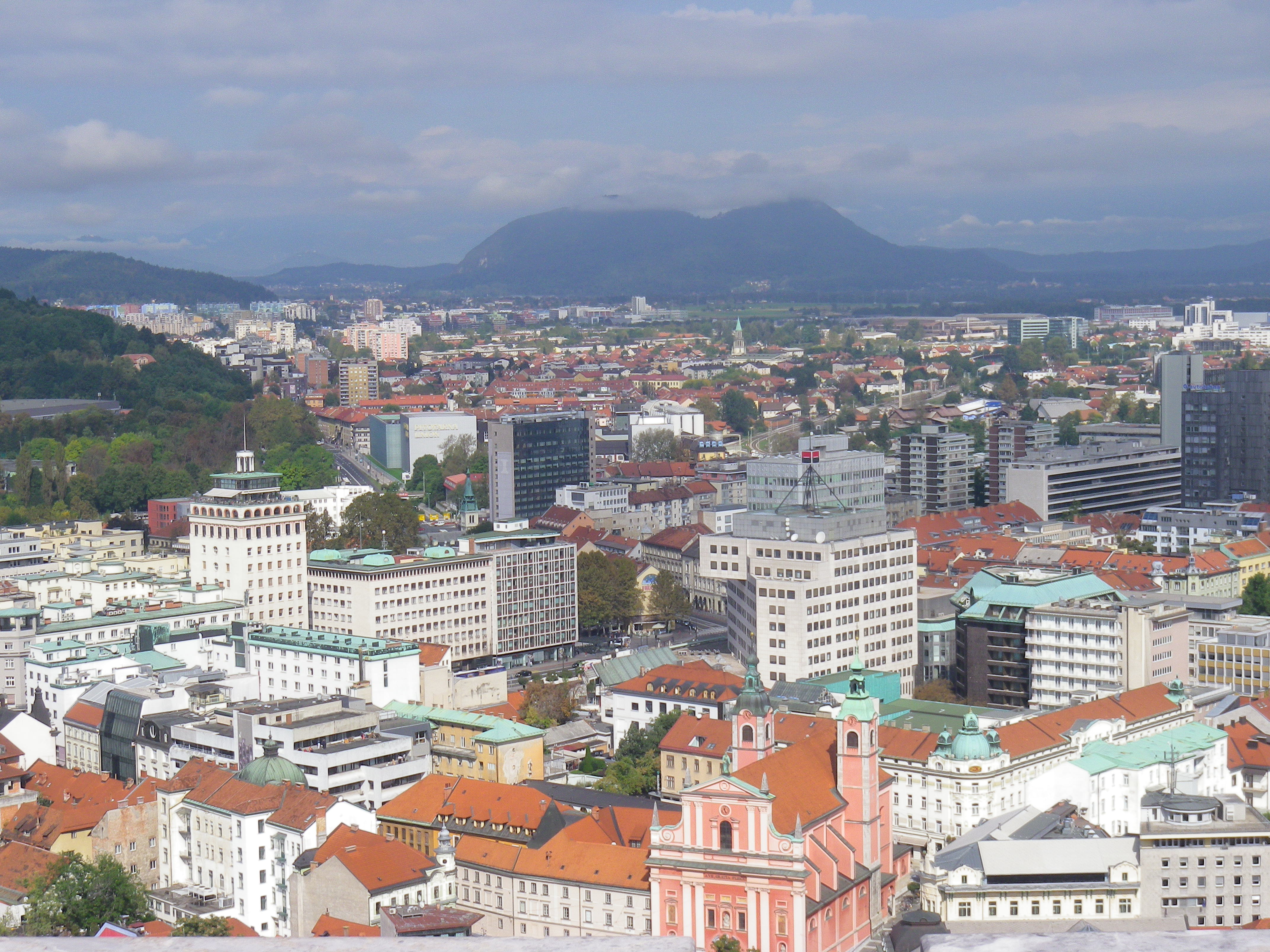 and the views from the top of the castle tower looking over the city to the Julian Alps in the distance.