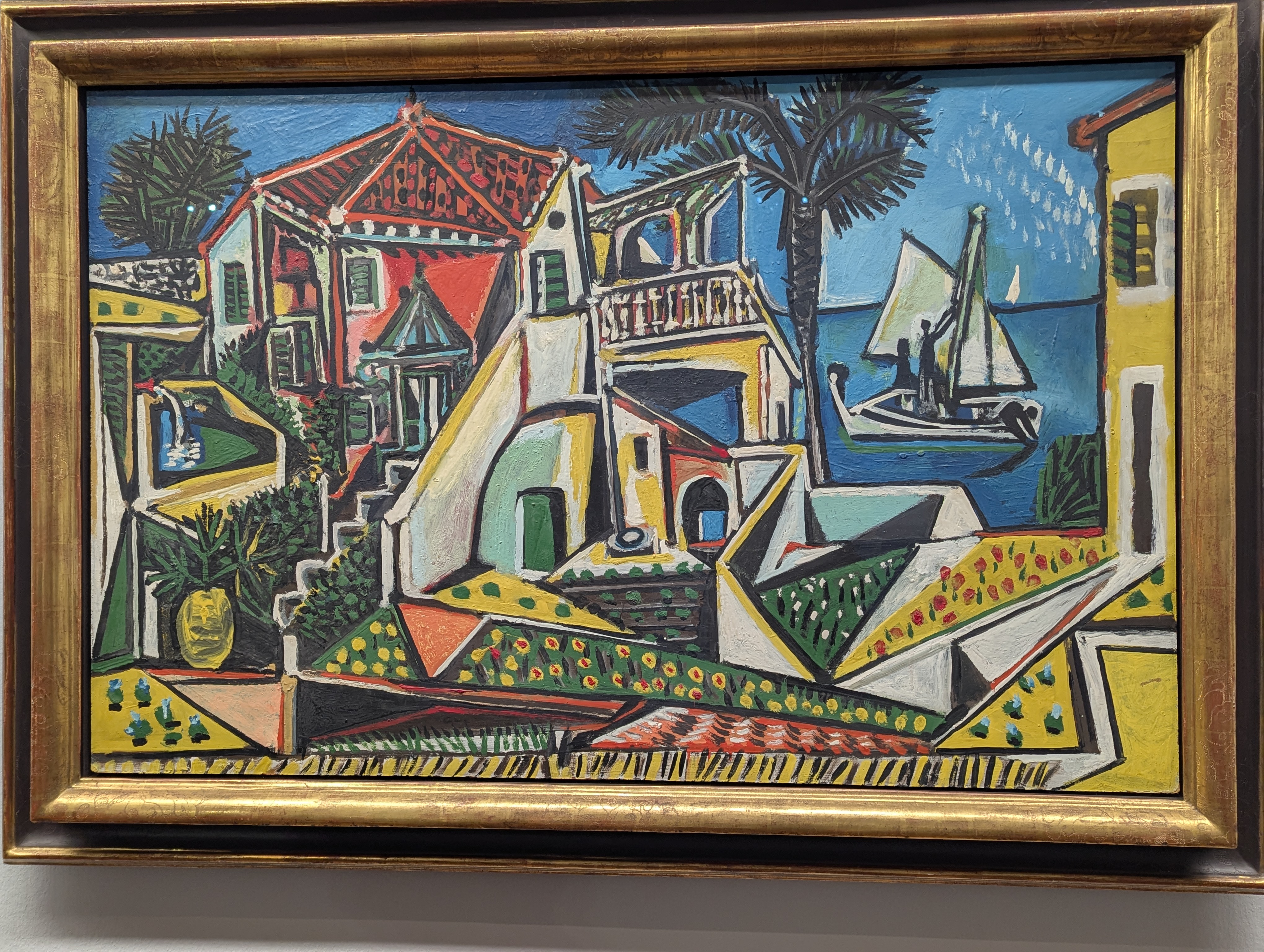 Thus fortified, we wandered through the art gallery, currently displaying “From Monet to Picasso.” Among the Impressionists, Expressionists and Cubists was this colorful Picasso,
