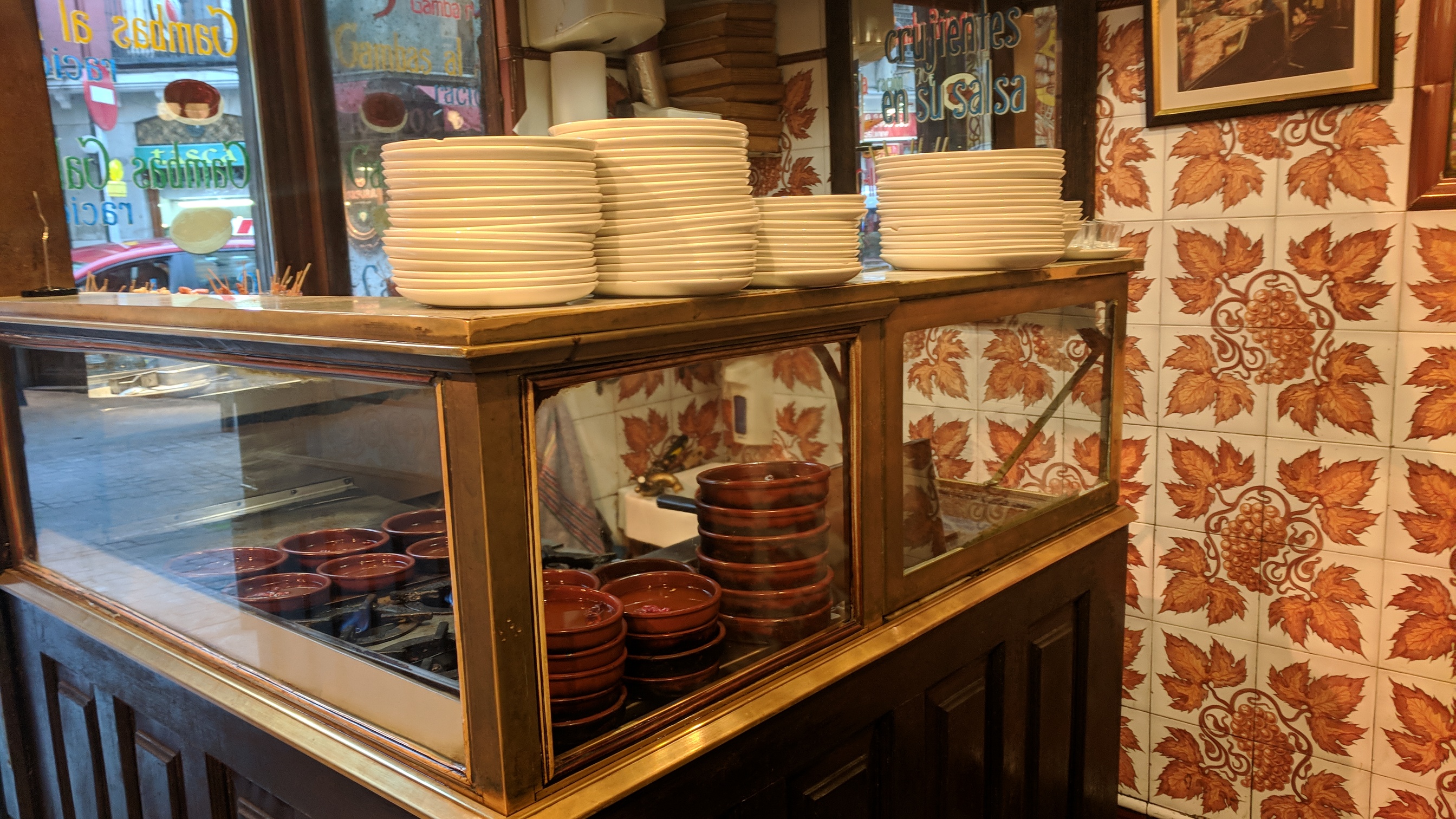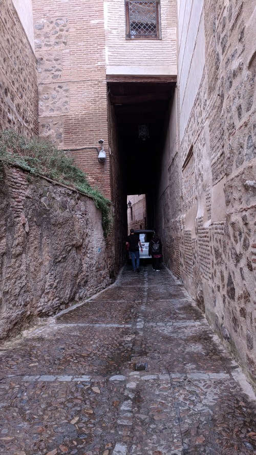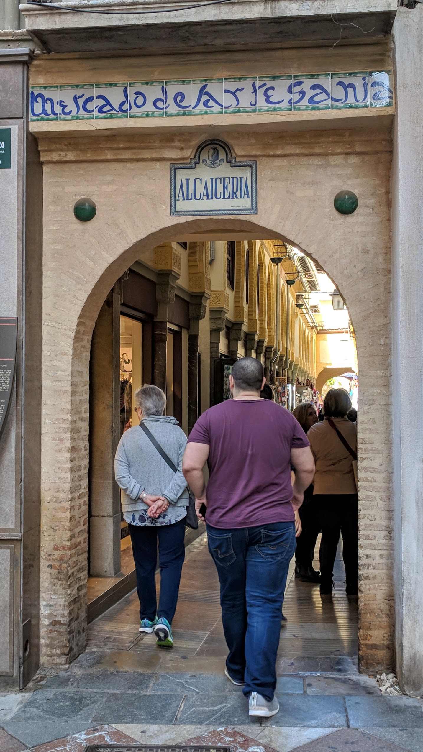 then we turned down a side street to the souk, reconstructed after a nineteenth century fire, thanks to the romantic admiration for the Muslim era (due in part to Washington Irving’s Tales of the Alhambra).