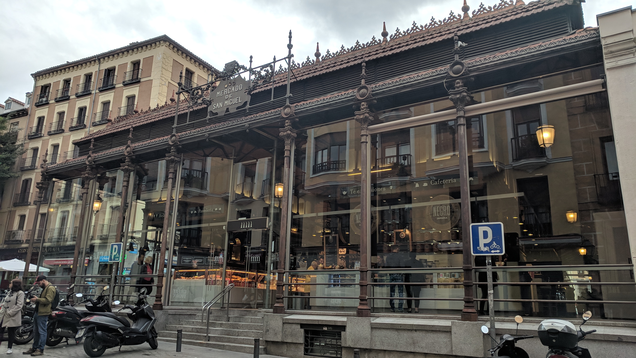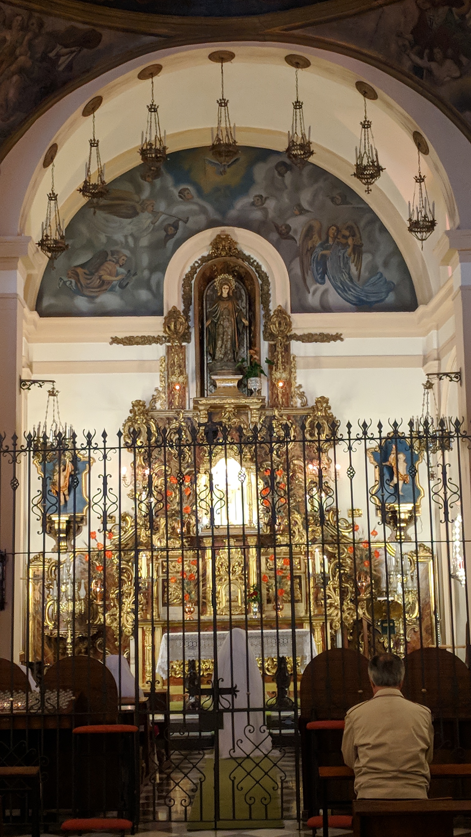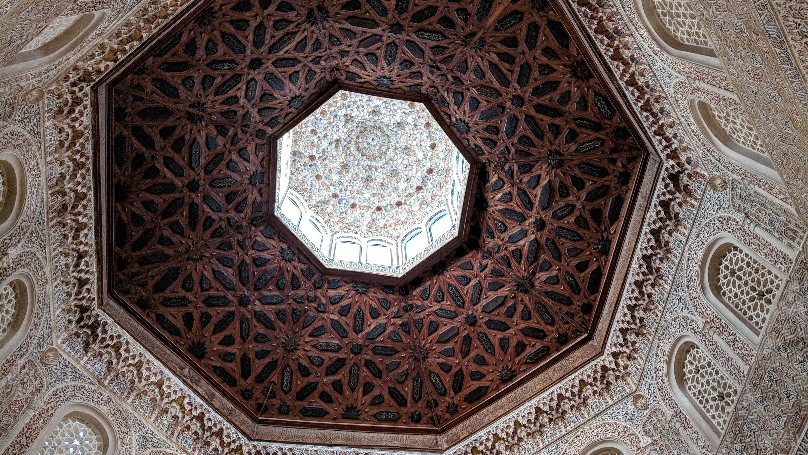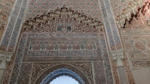 We wended our way through the narrow streets to the cathedral, a Gothic presence in the midst of everything else. Off to one side is a building used by the University of Granada, that has preserved a room of the original 14th century madrassa, complete with mihrab. This was, again, just like Morocco. I couldn’t resist several photos.