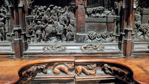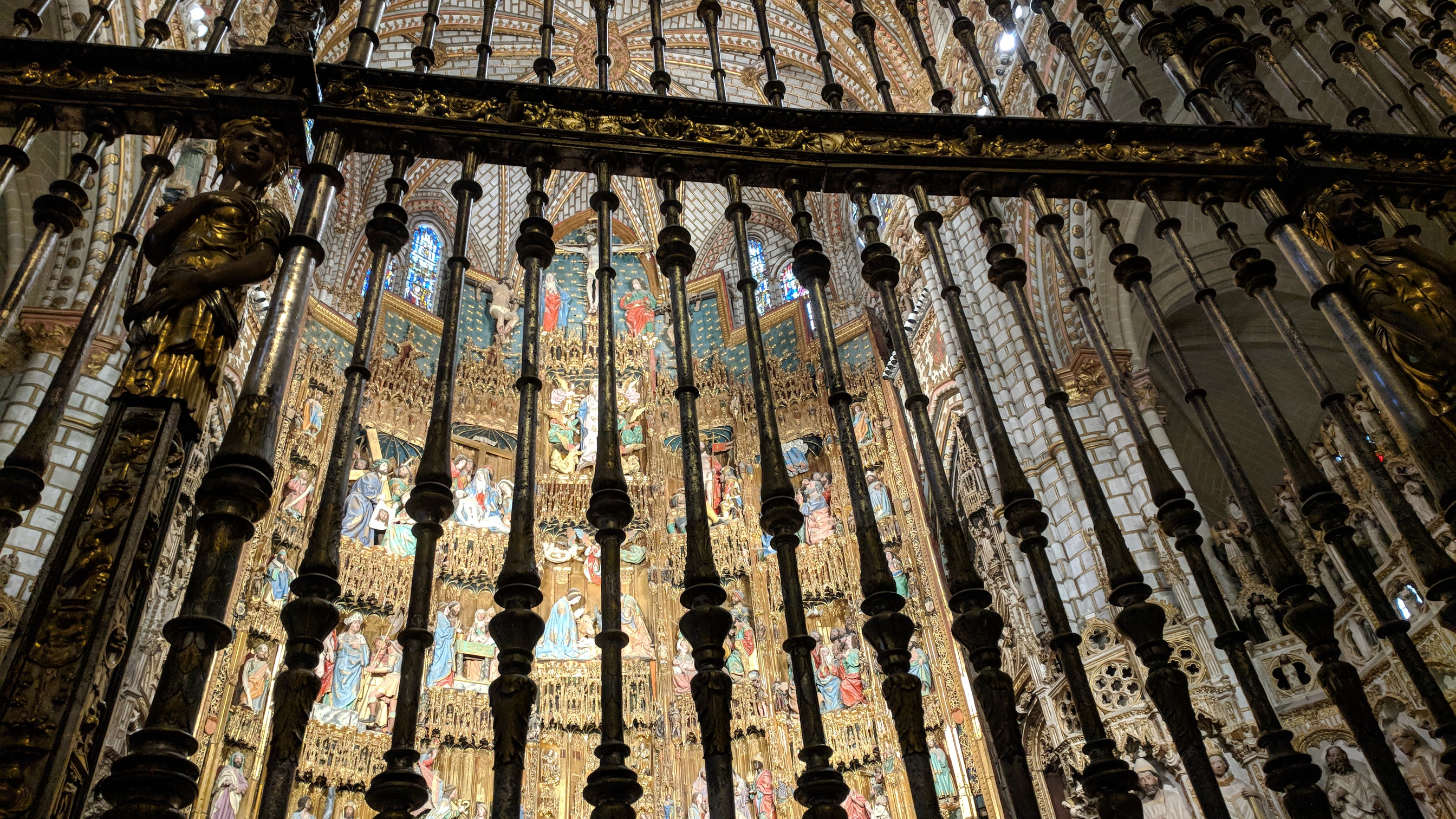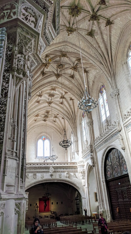 We left Senna here and walked back to the Plaza Nueva for a pizza lunch and a brief rest before our afternoon tour of the cathedral and chapel. Our guide for just the two of us was Violetta, whose English was wonderful though sometimes oddly pronounced (as is my Spanish, I’m sure). More about the tour here.