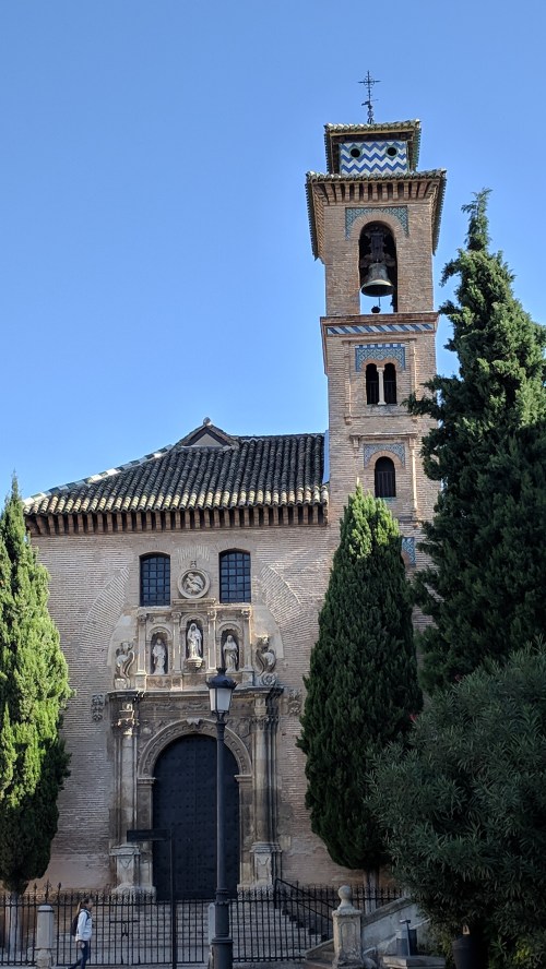 Walking back down the hill, we came to Plaza Nueva and admired the Christian church with Muslim elements (notice the tiles and the arched windows).