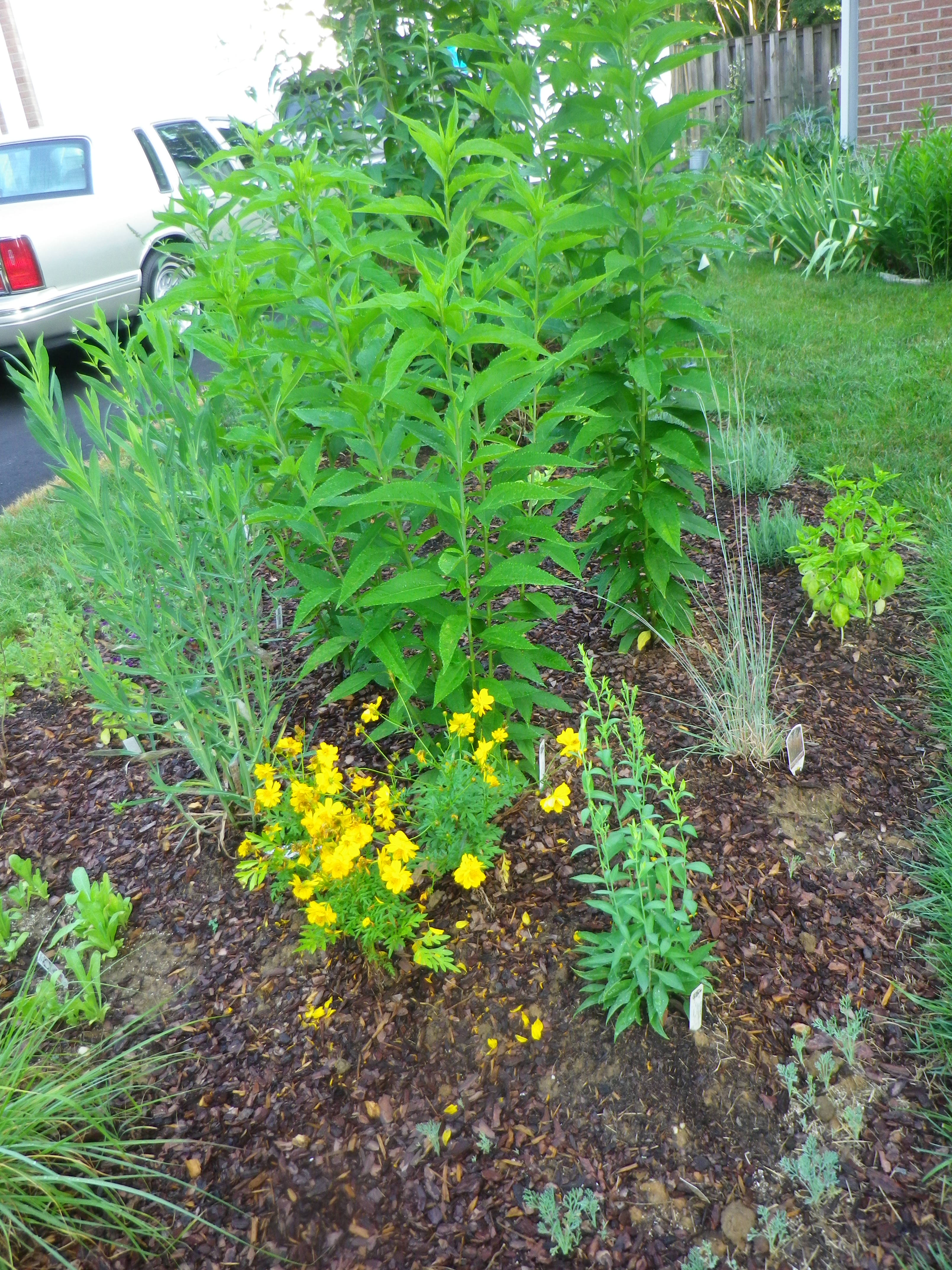 And look what’s popped up! A couple years ago I dug up a couple of plants that were just too big for their britches. This is a helianthus that just couldn’t be killed!