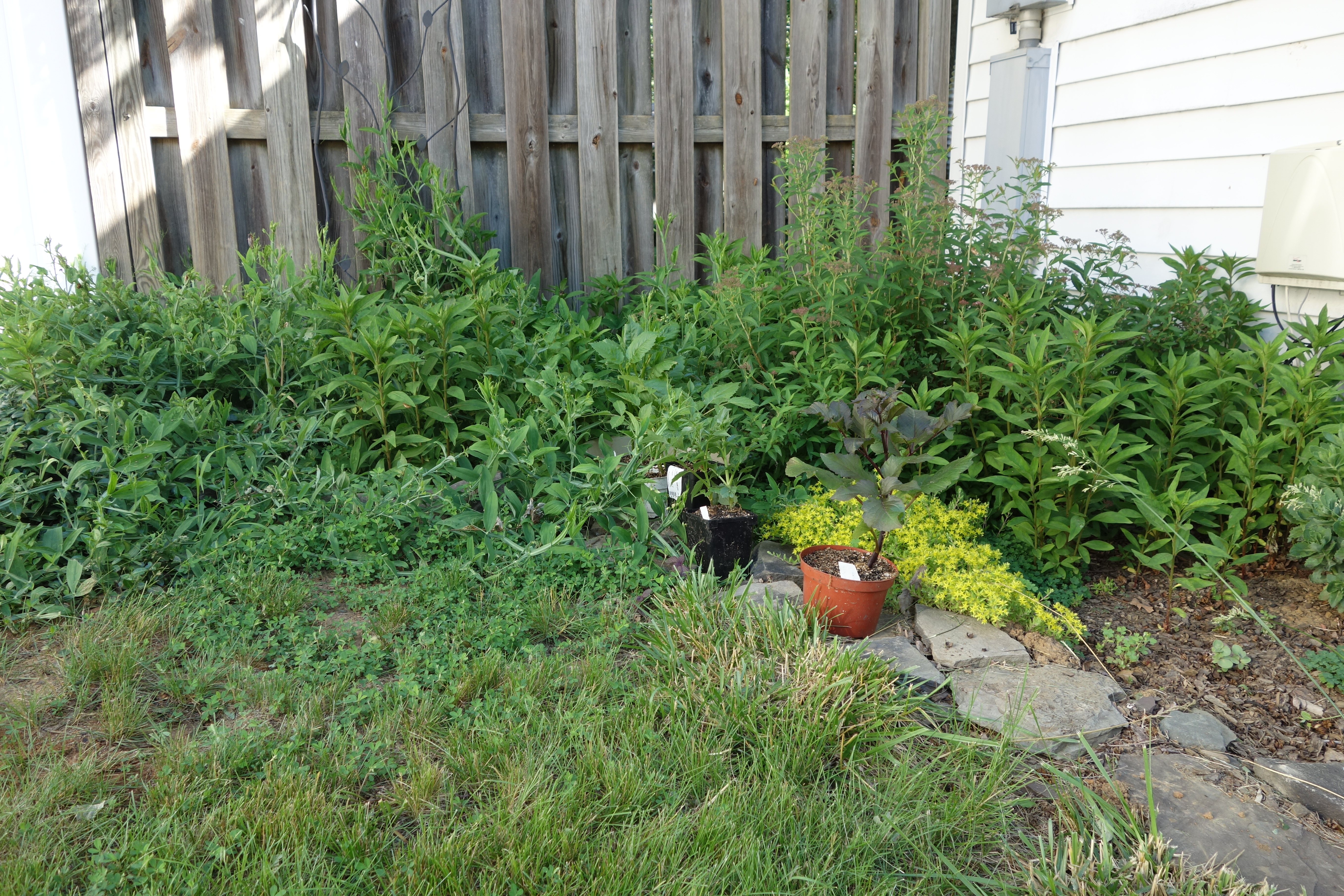 I am continuing to pull them out once they’ve seeded, so I’m probably not making much progress… I do try to shake the interesting colored ones, like this white one, in hopes that they’ll spread and grow next year.