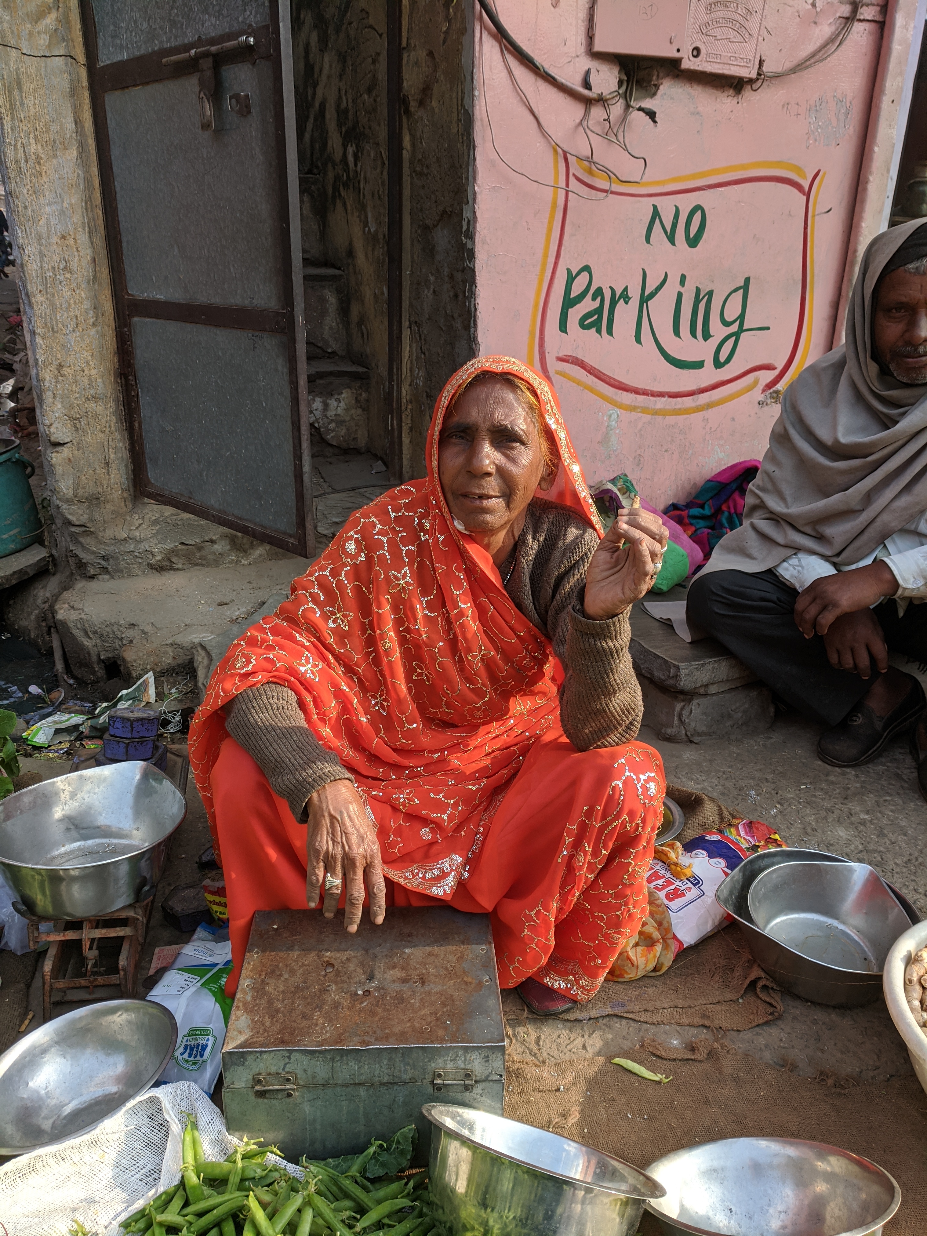 We were advised to ask people for permission before taking their picture. Dressed in a bright orange sari, this woman sat by her produce smoking a bidi, and I was happy to give her a tip in exchange for this photo.