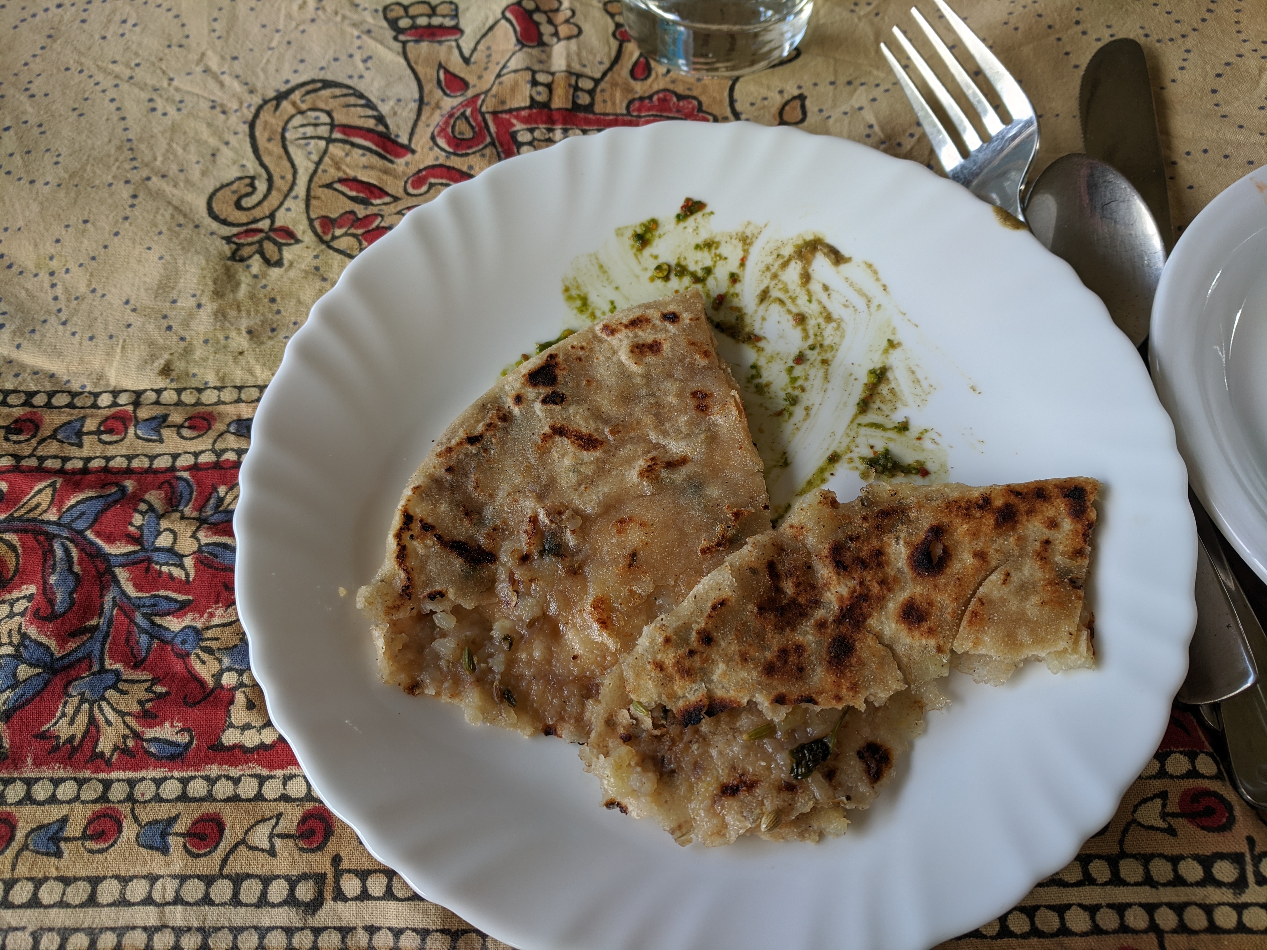 and the dishes we had observed them cooking. Plus a most delicious dish of chickpea dumplings in sauce. But we were not yet done! A small dish of butterscotch ice cream with pistachios and then peanut brittle and sesame candy, which I clearly ate too fast to get a photo. Followed by mango lassi that was delicious.