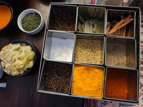 This spice box is found in most Indian kitchens.