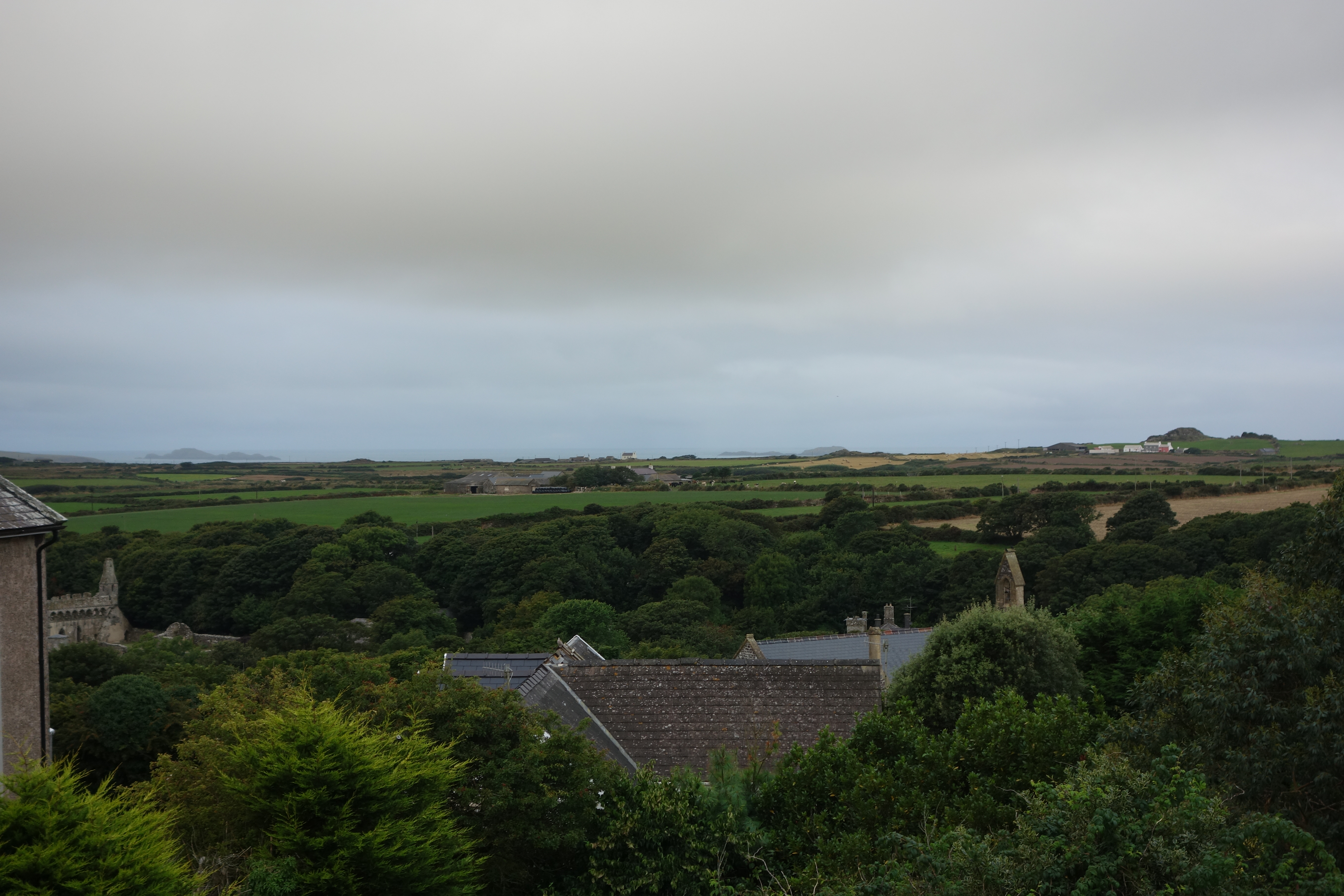 Unfortunately, my attention was distracted by an enormous truck ahead of me, too big for me to see around and pass, while the line of cars behind me just got longer. The truck finally turned off, and we could see the sea again. A handmade sign for St. Elvis which I thought was a joke but turns out to be a real place, then Solva, where I hope to walk while we’re here, then the national park center just outside St. Davids.