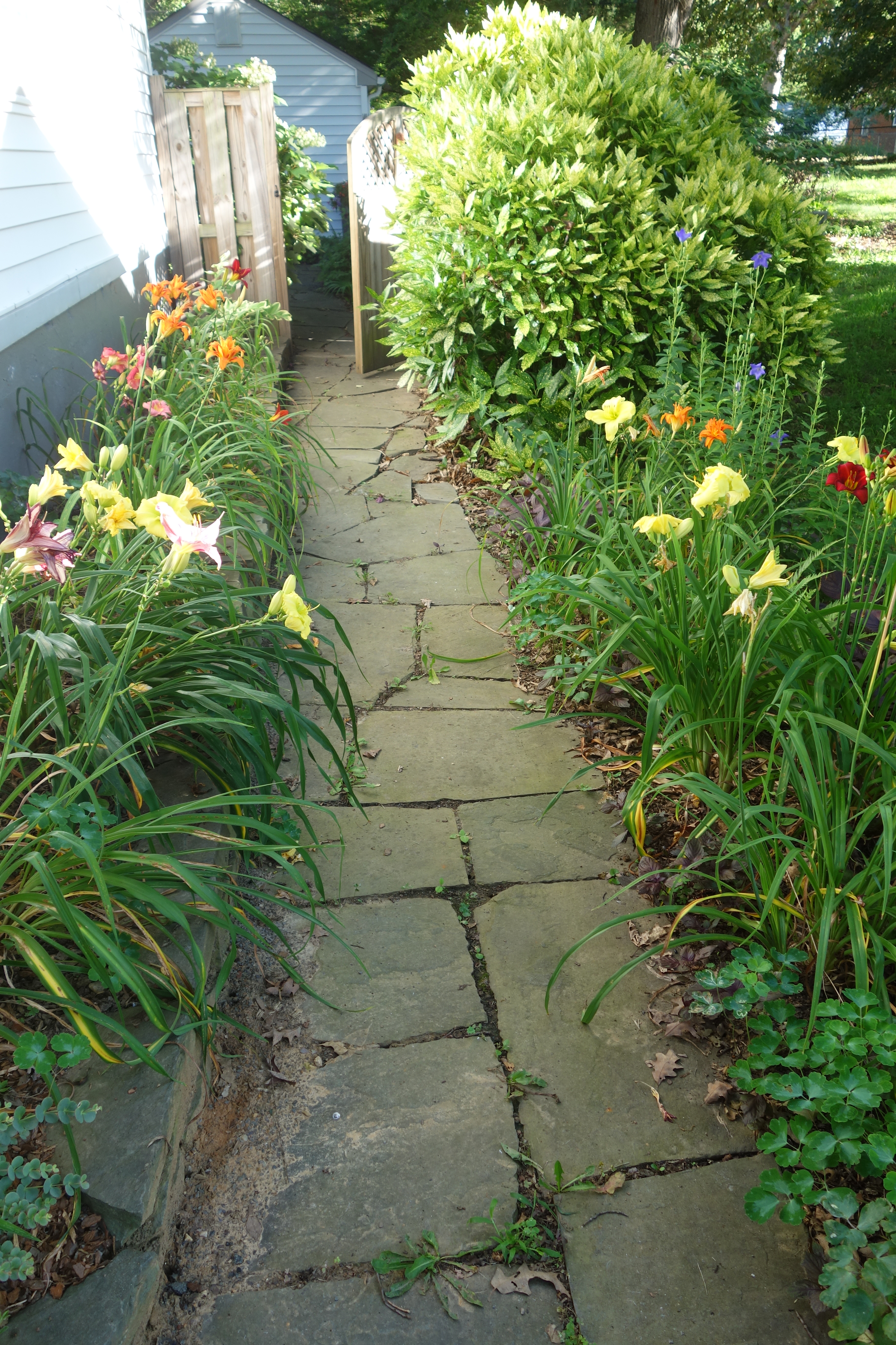 And the grading that prompted this whole thing looks very nice. The sewer people had uprooted the yews that grew against this wall, and I didn’t replant them. The rhododendron that I planted last year up and expired, though I have high hopes that a new one will have a better chance to staying alive.