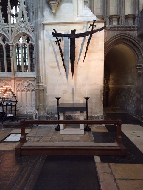 Toured the Cathedral this morning, an impressive building – Norman, so very massive, but with many side chapels and a large undercroft and cloisters. Then we followed a walking tour around the cloisters and other buildings. Thomas a Becket was murdered here most horribly and there is a powerful memorial to him where he was killed.