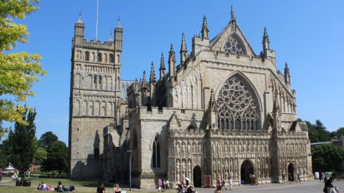 After Wells, no cathedral can seem quite so wonderful. Exeter is known for its length and its colorful bosses (including one of Becket’s murder, we can’t escape him!),