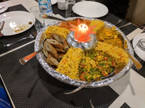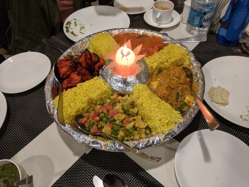 Drinks in my roon and then we went to the Taj Mahal Tandoor – very nice! but too much food. Kebab and samosa and lamb and chicken, etc. And so to bed.