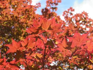Some of the gardens were not on the tour but got a close look from us anyway. These Japanese maples were brilliant against the blue sky.