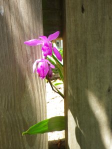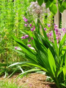 I’m pretty sure this is wild orchid, bletilla, like the one I saw growing at Colesville. There were two big clumps in this garden, here paired with giant alliums to marvelous effect.