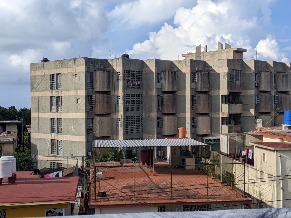 but in real life the space, though roomy, was dark and depressing, especially the bare gray flooring (not the warm color pictured) and weird lighting (mostly overhead). The ensuite bathrooms had only sinks and showers, with the shared toilet in a separate spot, which was inconvenient and would have been clearer to us on a closer reading. But the real problem was that the apartment appeared to be in the middle of a half-finished renovation. The kitchen, toilet and my bathroom had recently been updated. But Alison’s bedroom floor was severely buckled, which is a tripping hazard, at the very least.